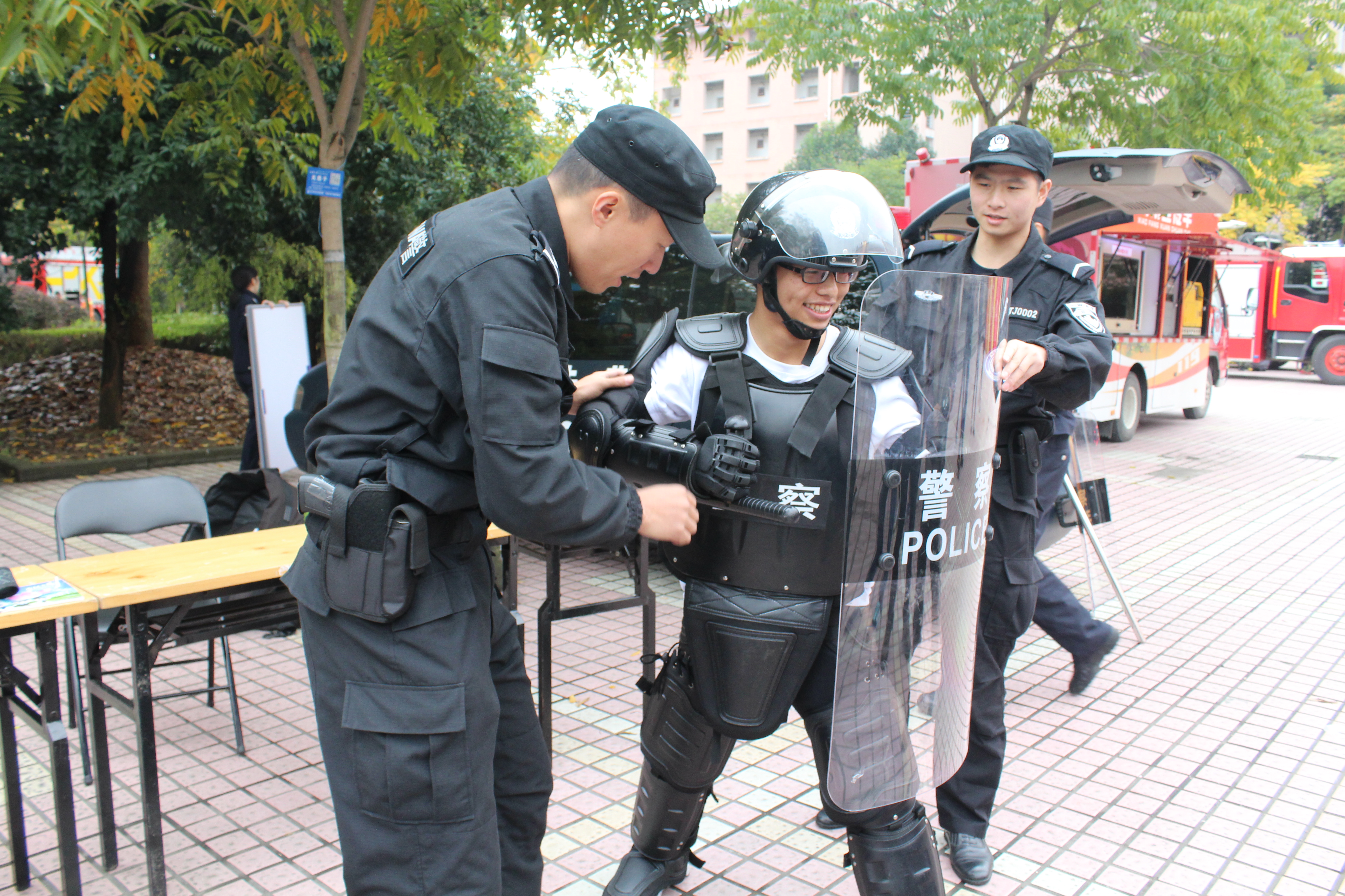 演习结束后,现场人员还一起观看了治安、交通、消防等安全图片展和消防、防暴警用装备展,并参与了消防体验活动。