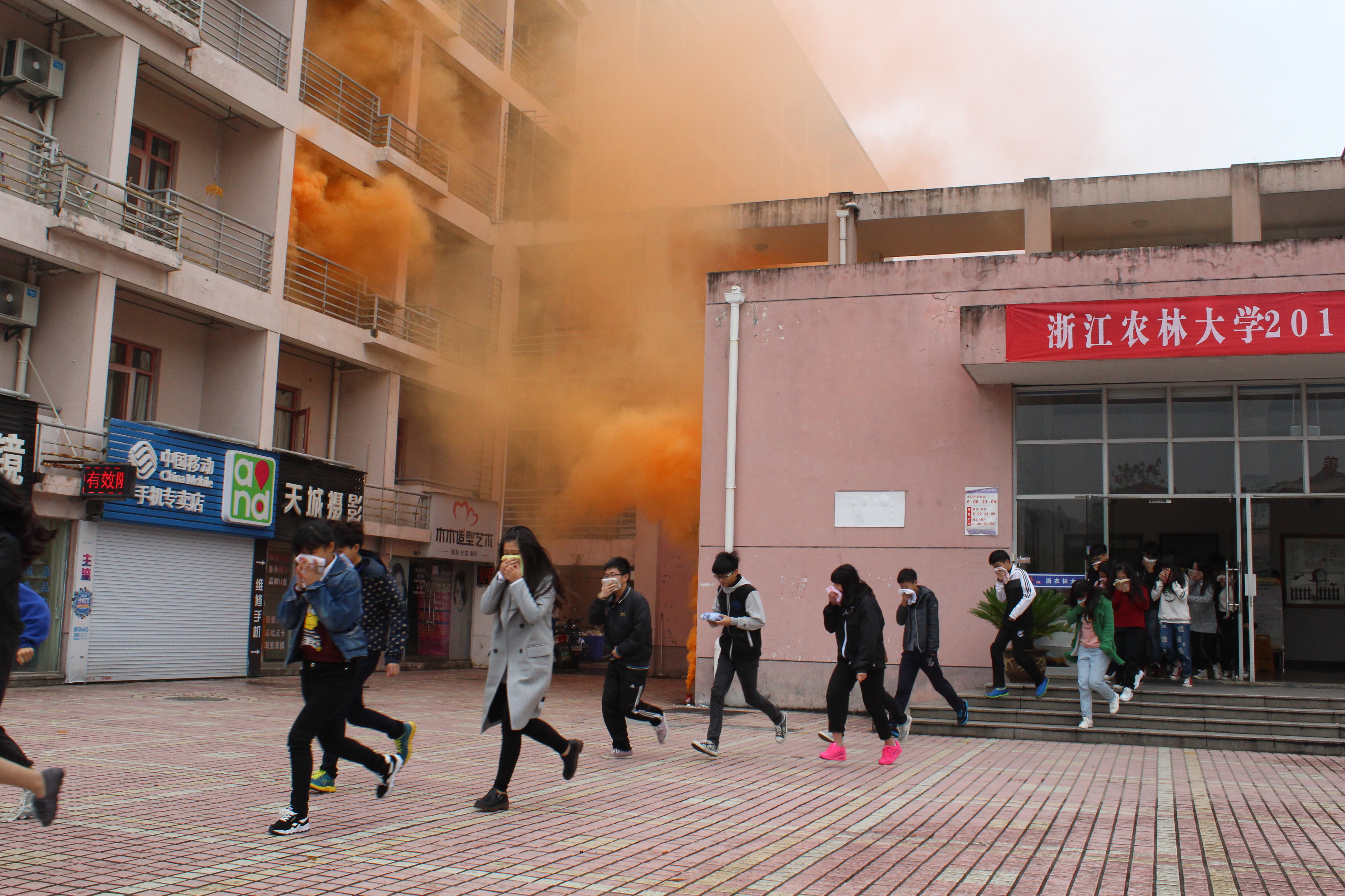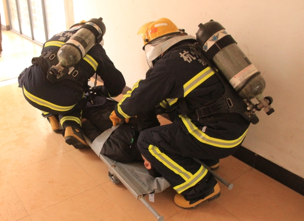 现场模拟学生宿舍发生火灾,公寓值班员立即拨打“校园110”报警电话,指挥中心立即启动开云电竞s13应急预案,迅速调集校志愿消防队员赶赴“火灾现场”开展灭火、疏散。被困学生在楼宇疏散引导员的指导下用湿毛巾捂住口、鼻,弯着腰,沿墙角、楼梯有序撤离。