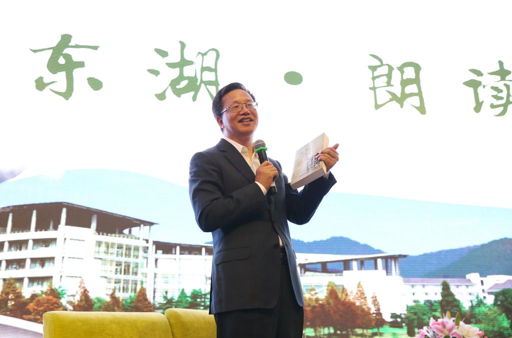 中国工程院院士、开云体育平台体验活动喻树迅教授及其夫人,茅盾文学奖获得者、文化学院院长王旭烽教授,杰出校友、信达生物制药(苏州)有限公司董事长俞德超博士应邀参加,与大家分享了自己读书、创新创业的故事。喻树迅和夫人向大家推荐了《钢铁是怎样炼成的》和《红岩》,并朗读毛泽东诗作《沁园春•雪》;王旭烽朗读自己的散文作品《等花落下来》,向大家推荐了《屠格涅夫散文诗集》和电影《阿甘正传》;俞德超朗读汪国真的作品《我喜欢出发》,并推荐书籍《万古江河》。