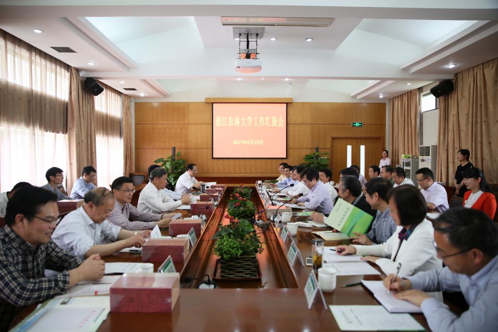省林业厅厅长林云举、省政府办公厅副主任蒋珍贵、省国土资源厅副厅长夏晓鸿、省农业厅副厅长叶新才、杭州市副市长王宏、临安市委书记卢春强等陪同调研。校党政班子成员参加调研座谈。