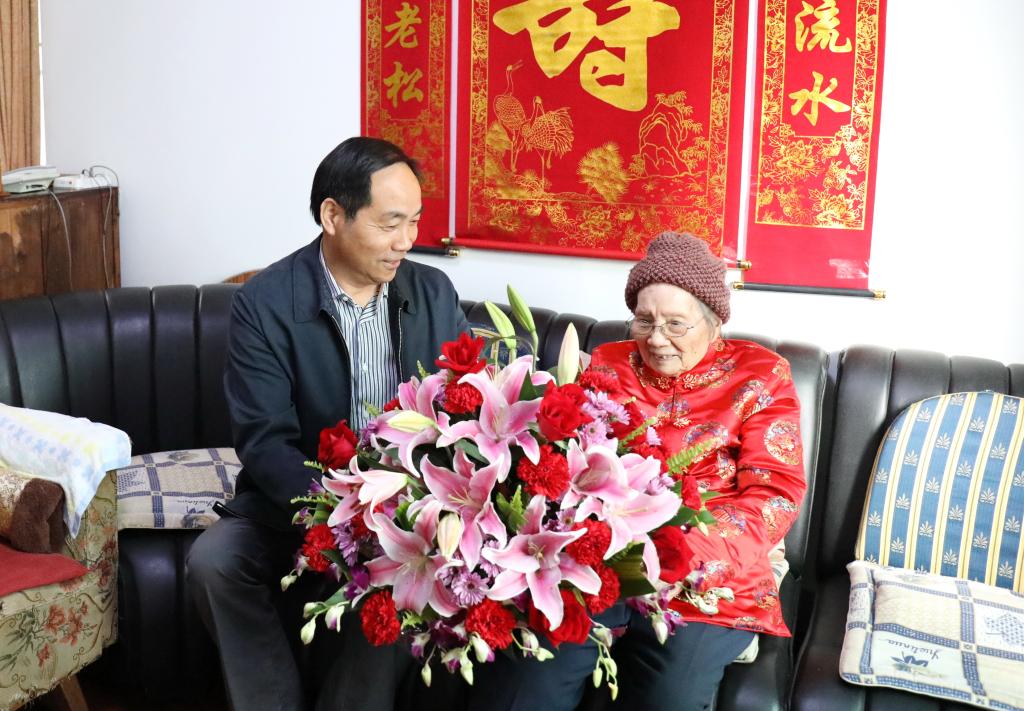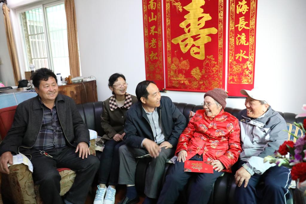 4月25日,在赵梅老师百岁寿辰来临之际,校党委书记周国模专程登门慰问,送上诚挚的生日祝福。