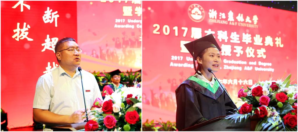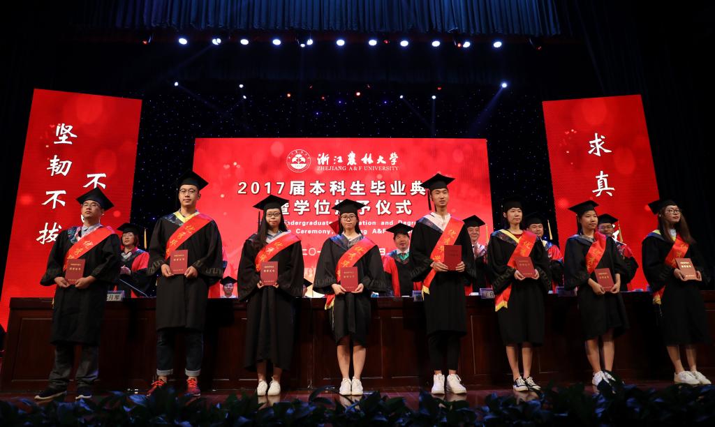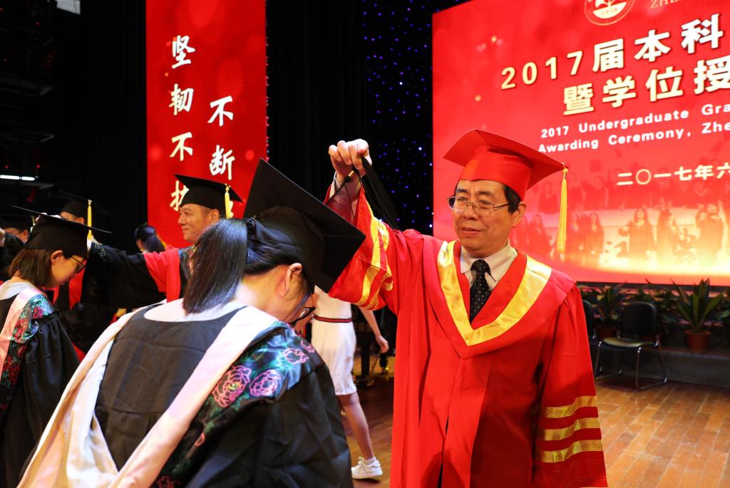 6月16日,学校隆重举行2017届本科生毕业典礼暨学位授予仪式。校长应义斌,校学术委员会副主任、中国工程院院士喻树迅,副校长王自勇、金佩华、沈希、沈月琴,校党委委员、宣传部部长胡祖吉等出席典礼,典礼由校党委副书记史永安主持。满载着收获的喜悦和美好的憧憬,2017届本科毕业生与他们的亲友们共同见证了这一难忘的时刻。