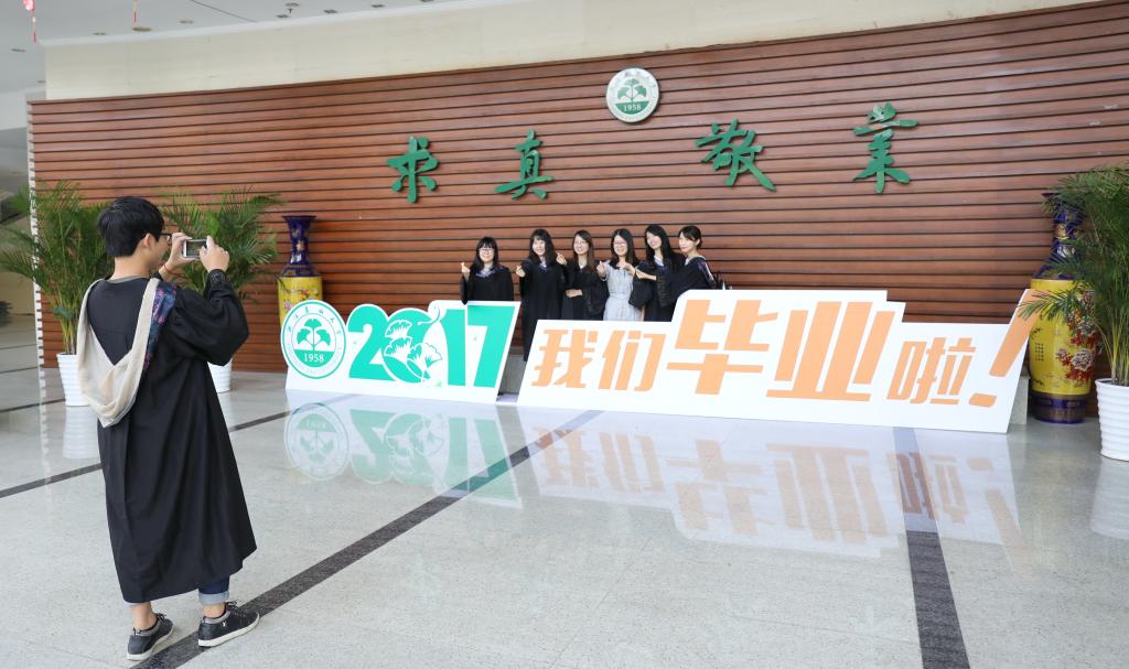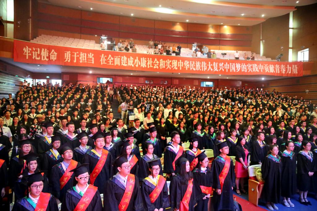 在音乐的伴奏下,3709名毕业生按学院、班级依次上台,进行学士学位授予仪式。校领导为每一位毕业生颁发学位证书、扶正流苏,并与开启未来新征程的2017届毕业生合影留念。