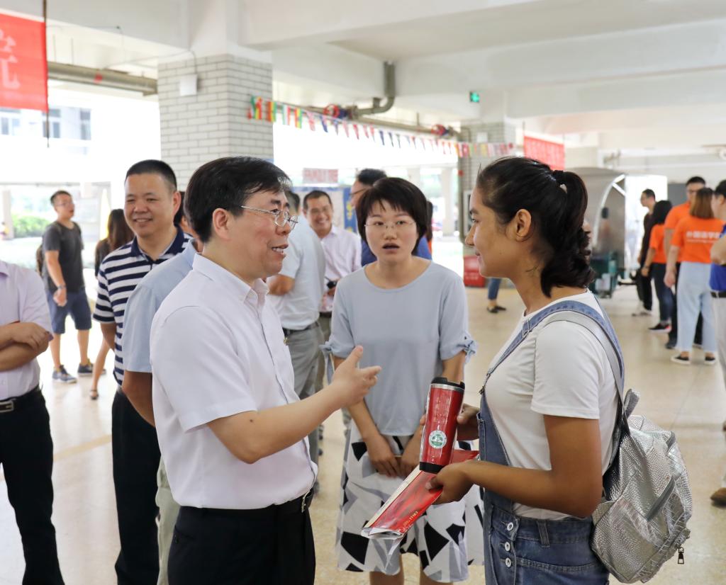 校领导周国模、应义斌、史永安、王自勇等前往东湖校区和衣锦校区的新生报到现场,检查指导迎新工作,与新生和家长亲切交流,勉励新生积极适应大学环境,坚定理想信念,胸怀远大抱负,争取全面发展。