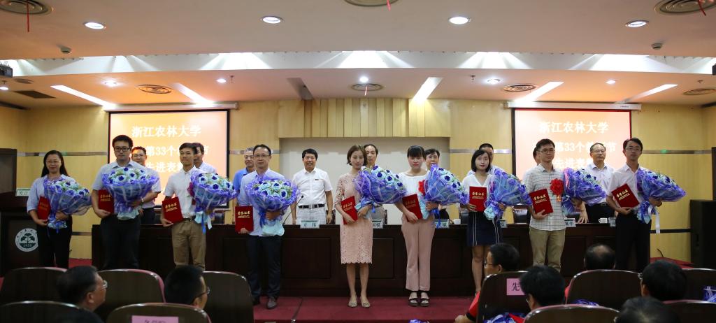 9月8日下午,学校庆祝第33个教师节暨先进表彰会在东湖校区图书馆第二报告厅举行。校党政领导班子成员周国模、应义斌、史永安、王自勇、钟平、金佩华、胡祖吉、童晓晖出席表彰大会,并为受表彰的集体和个人颁奖。会议由校党委副书记方伟主持。