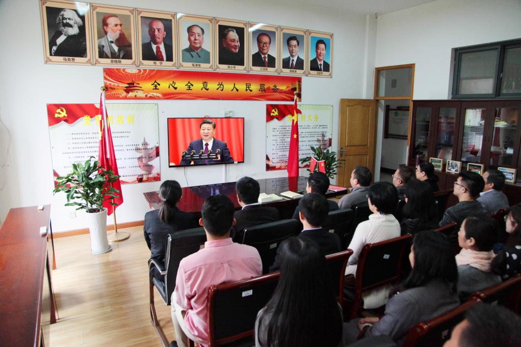 上午9时,校党委理论学习中心组在行政楼第一会议室集中收看了十九大开幕会。机关有关部门、开云体育平台体验活动、工程学院、马克思学院、信息学院、图书馆、后勤集团等单位专门对收听收看现场进行了氛围布置,校团委组织了校院两级学生干部在活动中心进行集中收看,全国先进基层党支部——森林培育学科党支部在国家重点实验室组织支部党员集中收看直播实况。此外,广大师生也纷纷在教室、办公室、党员活动室等场所收听收看。