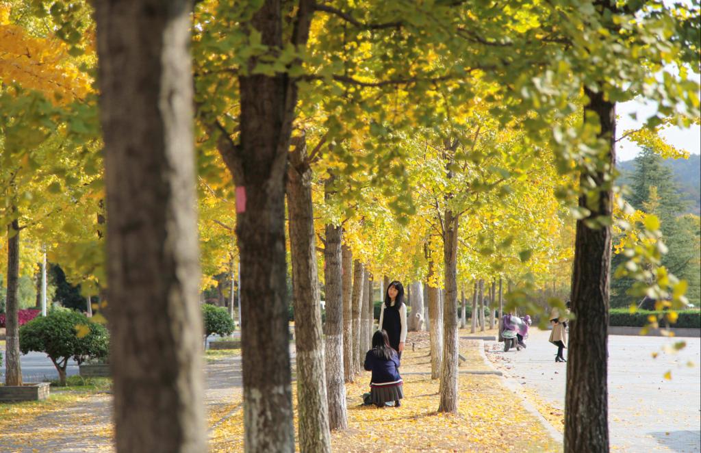 叶子绿了又黄,银杏换了新妆,分外妖娆。一番缤纷后,银杏叶翩然飘落,告示着季节的变化,感悟着时光的荏苒。