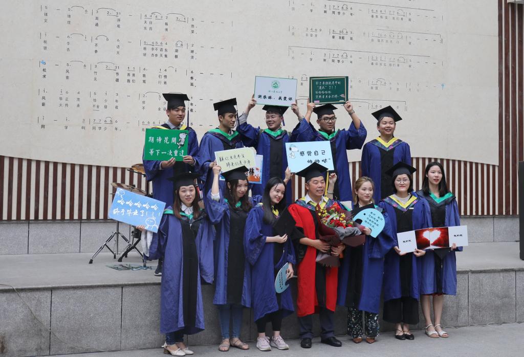 学位授予仪式上,应义斌为每一位毕业研究生颁发证书、拨穗正冠,合影留念,学院院长和研究生导师共同见证这一庄严时刻。