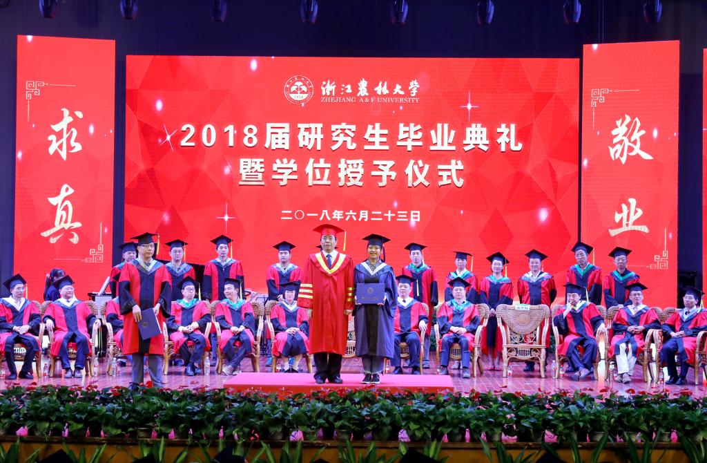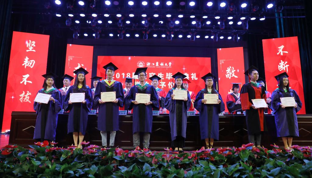 6月23日,学校隆重举行2018届研究生毕业典礼暨学位授予仪式。校党委书记周国模,校长应义斌,副校长王自勇、金佩华、沈月琴,校党委委员、宣传部部长胡祖吉,校党委委员、组织部部长童晓晖等出席典礼,典礼由校党委副书记史永安主持。