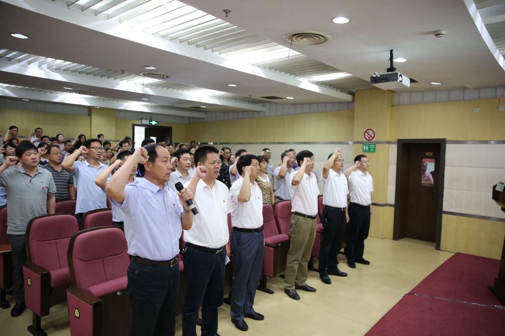 全体参会师生党员在周国模书记的领誓下进行了庄严的宣誓仪式,重温入党誓言。