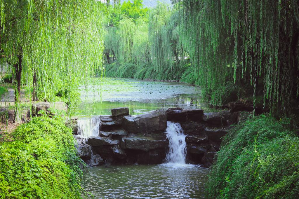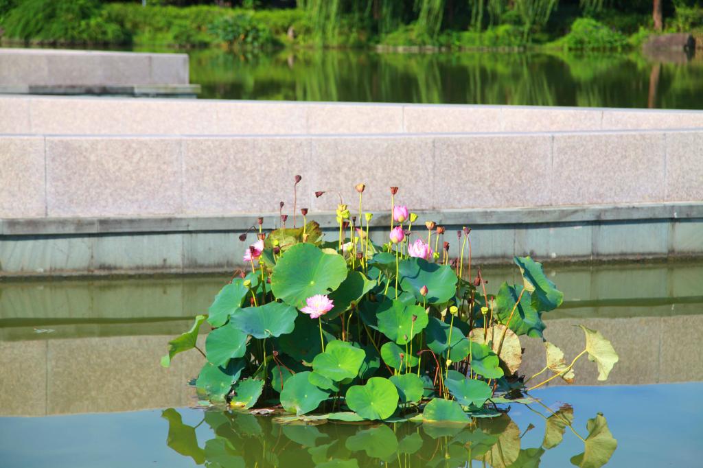 阳光从层层叠叠的枝叶间透射下来,地上便印上大大小小粼粼的光斑。茂密的树丛,荡漾的碧波,亭亭玉立的莲花,还有潺潺的水声,自然风光与校园建筑交相辉映,每一个地方都留下了农林人探寻的足迹。