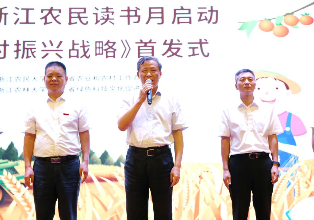 金佩华代表学校致辞,他表示,开展浙江农民读书月活动,引导浙江农民大学的学员们和更多的农民兄弟不断读书、终身学习,对于培养浙江新型职业农民、提升浙江农民科学素养、促进浙江乡村全面振兴具有重要意义。金佩华盛邀与会嘉宾、各界朋友参加10月20日农林大学建校60周年庆祝活动。