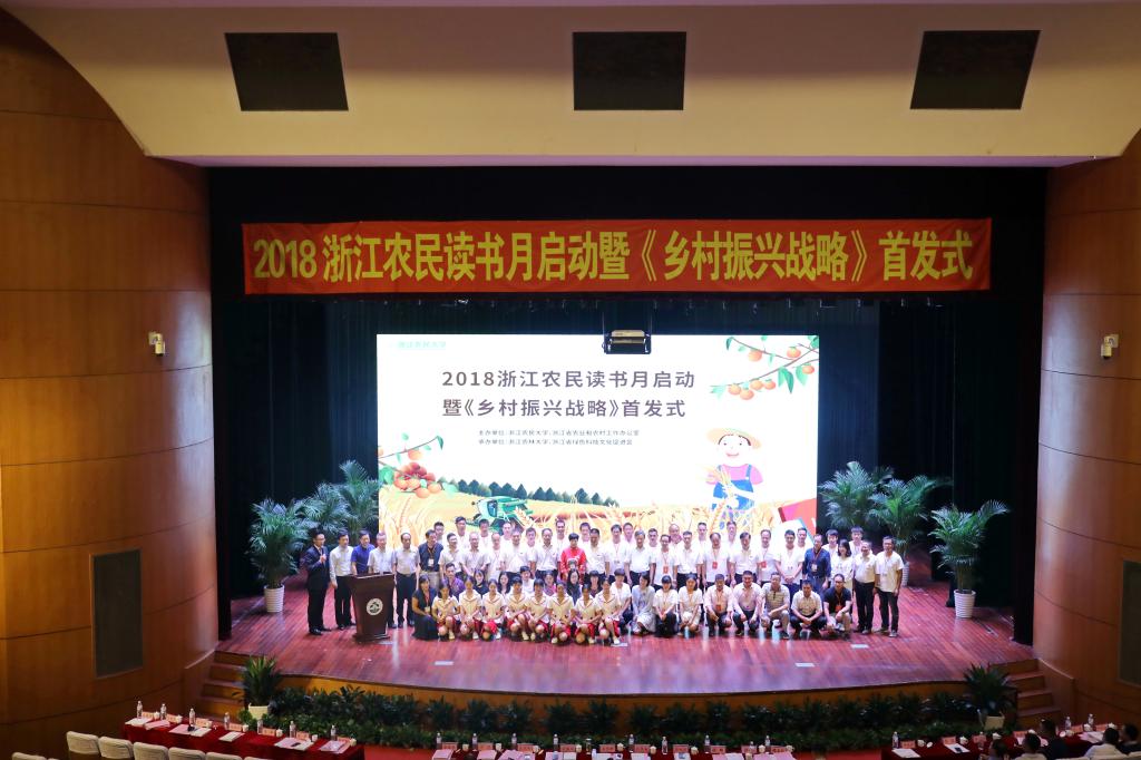 9月28日,在学校喜迎60华诞之际,由浙江农民大学、浙江省农业和农村工作办公室主办,开云电竞s13、浙江省绿色科技文化促进会承办的“2018浙江农民读书月”启动暨《乡村振兴战略》首发式在我校举行。浙江省政协副主席孙景淼出席仪式并宣布浙江农民读书月活动正式启动。浙江省农业和农村工作办公室副主任蒋伟峰,校党委副书记史永安,副校长金佩华,校党委委员、宣传部长胡祖吉出席仪式。