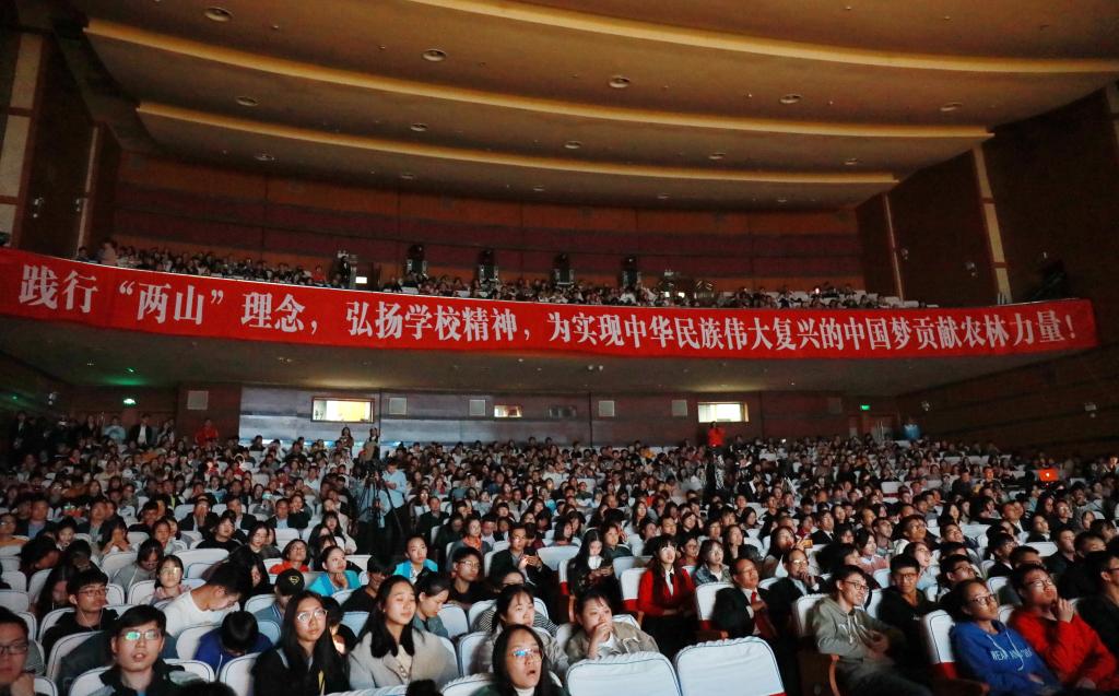 “肯干,实干,能干,这种品质就像血液一样流淌在我的体内,现在无法改变,我希望你们这一代农林人永不言弃,发扬光大;坚守‘绿水青山就是金山银山’,一定会大有作为!”原创校庆剧《大地恋歌》里,科技特派员“孙大林”的一句话,引起了全场师生的共鸣,呈现的是农林人心底最纯粹、最质朴的执念。