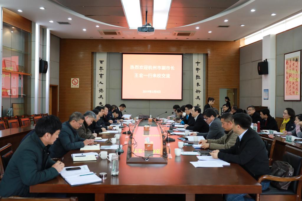 3月8日上午,杭州市副市长王宏一行来校调研并举行座谈,校党委书记周国模、校党委原副书记方伟等陪同调研。王宏一行还实地考察了国家重点实验室等。