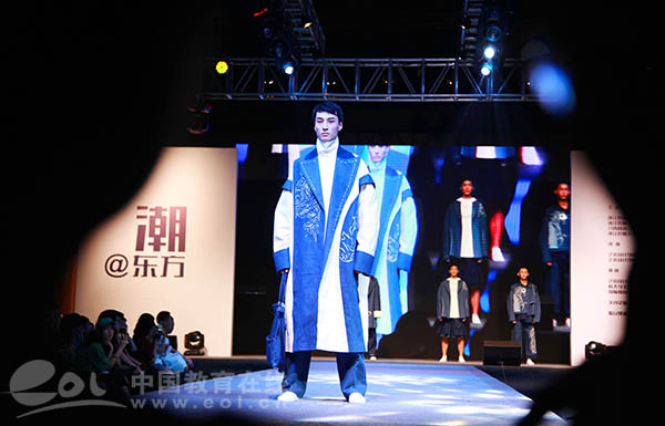 这次毕业秀主题为“潮@东方”,来源于“中国潮”力量在国际服装周的醒目亮相。本土品牌的转型,即是国人对中国元素的情怀,也是服装设计理念的蜕变。毕业生们在设计中运用汉服等传统形制,百家衣拼布等传统工艺、山海经怪兽图样等传统图案、布老虎等传统造型和中药染等传统染色,与时尚流行趋势相结合,挖掘传统服饰文化魅力,倡导民族文化自信,打造了一场精彩的“国潮秀”。