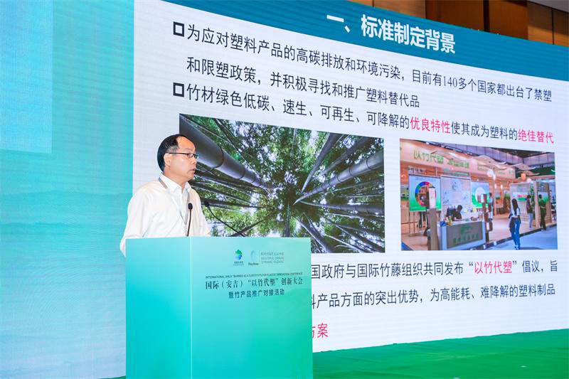 周国模教授是该标准的主要起草人。他介绍说,这个标准从以竹代塑产品的生产和实际应用视角出发,围绕以竹代塑产品的碳减排效应和塑料污染的减量程度,创新性地构建了“替代减排率”“材料替代率”和“产品更新比例”三类评价指标,并运用熵值法科学确定各指标的权重,运用自然断点分级法对以竹代塑产品的综合效应进行等级划分。