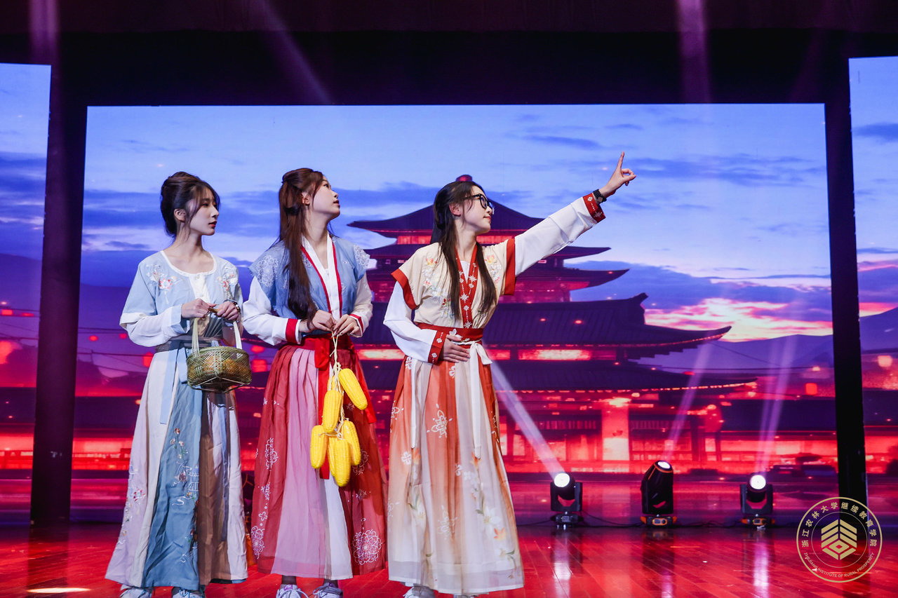当天的晚会以“雁助乡村·共富有我”为主题,分为坚韧不拔、绿水青山、耕读并进、共创共富四个篇章12个节目,全部来自田间地头,围绕农村农业。歌曲《妈妈的那碗大陈面》介绍了一碗手工面开启乡村致富的故事;舞蹈《美丽畲乡等你来》展示了美丽畲乡的文旅产业发展;走秀《福至》用各种农产品为大家送上了新年祝福;情景剧《头雁去哪儿了》为大家呈现了头雁学员们在乡村振兴的筑梦路上勠力同心、互助奋进的场景。