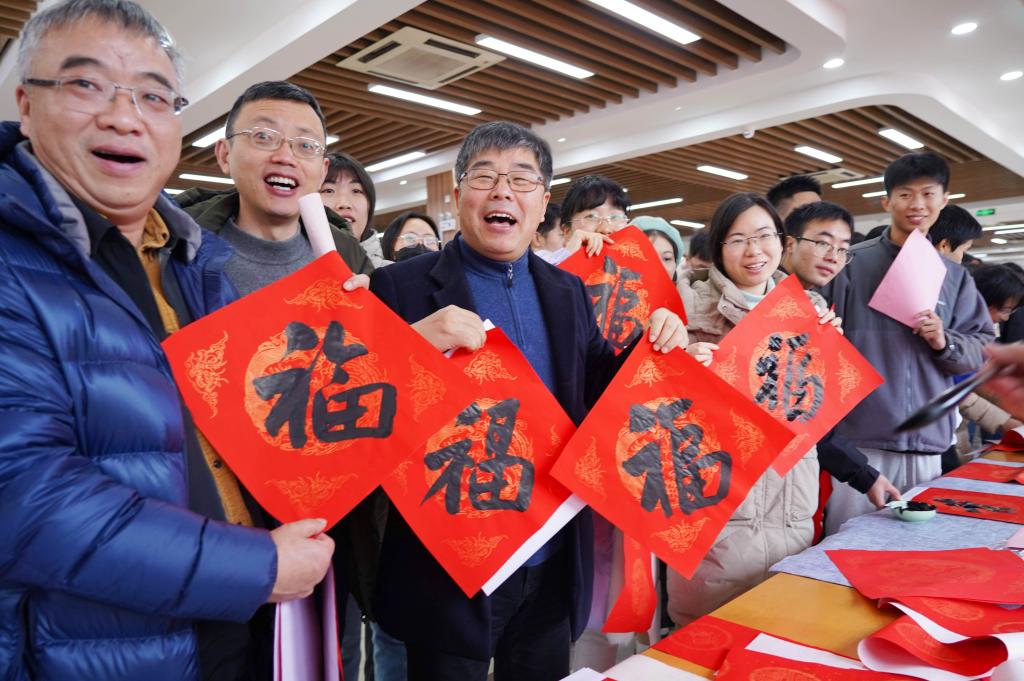 1月15日,开云电竞s13书法协会的师生们,正在给陆续放寒假回家的老师同学书写“福”字、春联等,让大家能够开开心心带着学校的“福”气返乡过年。