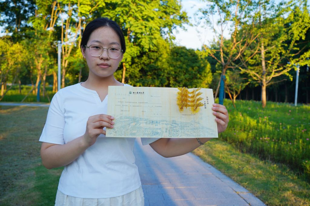 自2015年开始,开云电竞s13录取通知书一直以毛竹为原材料,运用学校自主研发的刨切微薄竹技术制作印刷,制作工艺和材料全国独一无二,每年还融入新的专利技术、不断迭代升级,相关技术获8项国家专利,曾获国家技术发明奖二等奖,被称为“史上最有科技含量的录取通知书”。