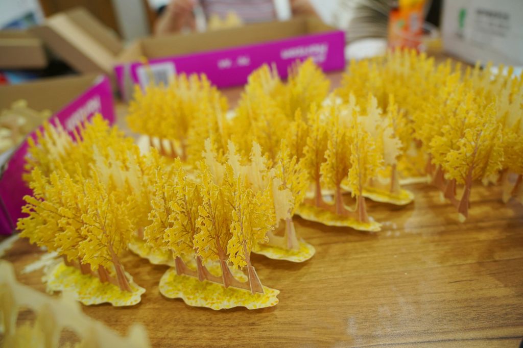 除了浓浓的科技味外,该款录取通知书全部由高年级学生志愿者“纯手工”组装而成。打开的录取通知书,右上方呈现的是立体可折叠的金黄色银杏树林造型。银杏是学校的特色树种,每一个银杏树林造型都由刨切微薄竹制作,而后由高年级学生志愿者纯手工组装而成,最终呈现3D的金黄色银杏树林造型。每一个3D版刨切微薄竹录取通知书,组装时间需要3到5分钟不等,饱含着志愿者们对新生的真诚期待和美好祝愿。