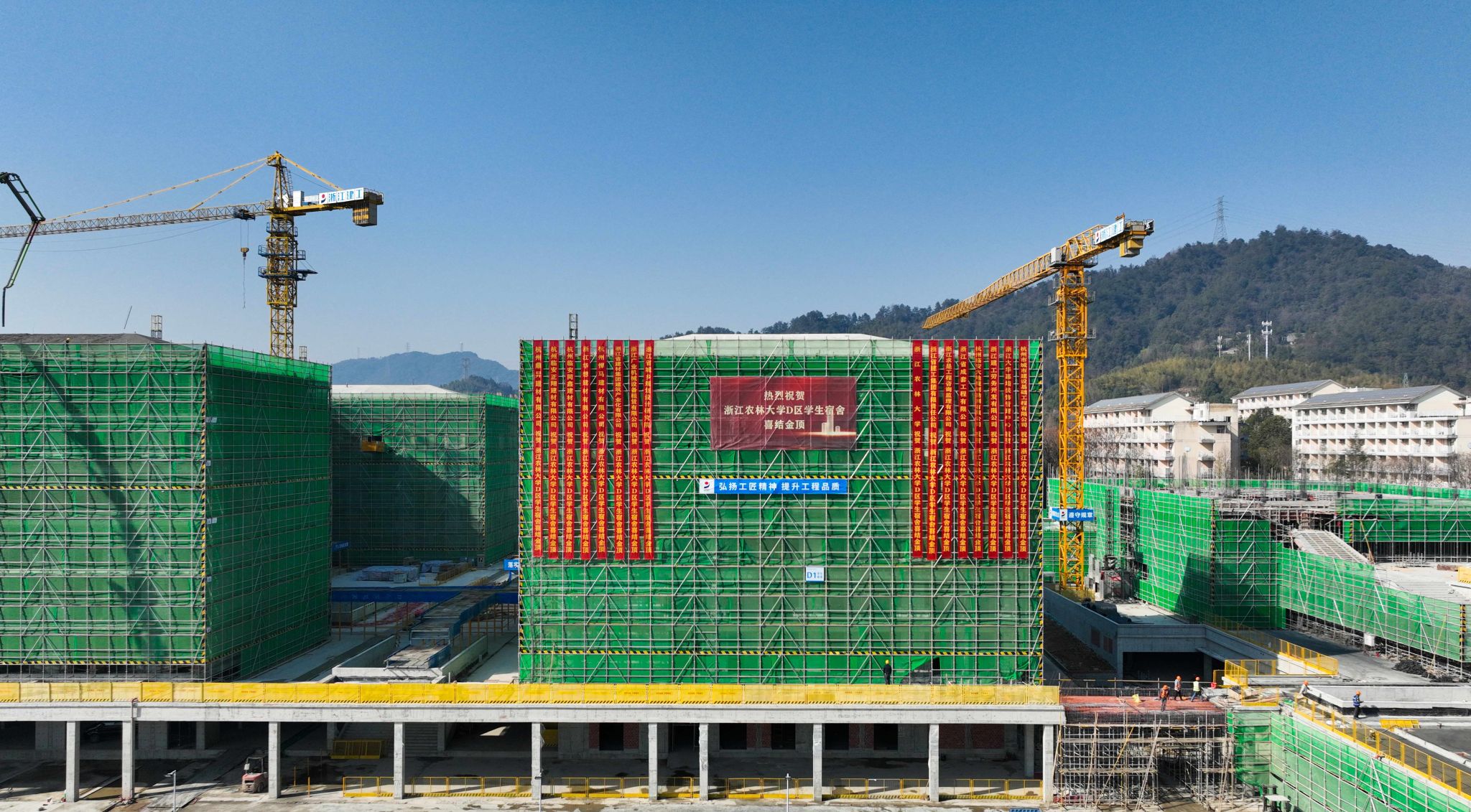 站在D区学生宿舍建设工程的屋顶向北看,100多米处正式刚刚投入使用的浙江新农科教育教学中心大楼。浙江新农科教育教学中心建设工程项目2024年10月25日竣工,总建筑面积62645平方米,其中地上建筑面积49995平方米,地下建筑面积12650平方米,总投资33165万元。该项目是落实浙江省委省政府支持学校高水平大学建设的重要举措之一,也是开云电竞s13基础设施提质工程和推进高水平大学建设的重要组成部分。学校将根据新农业、新乡村、新农民、新生态的发展需求,努力把新农科教育教学中心建设成为集教育教学、科技创新、科普呈现为一体的浙江新农科教育展示的“重要窗口”。