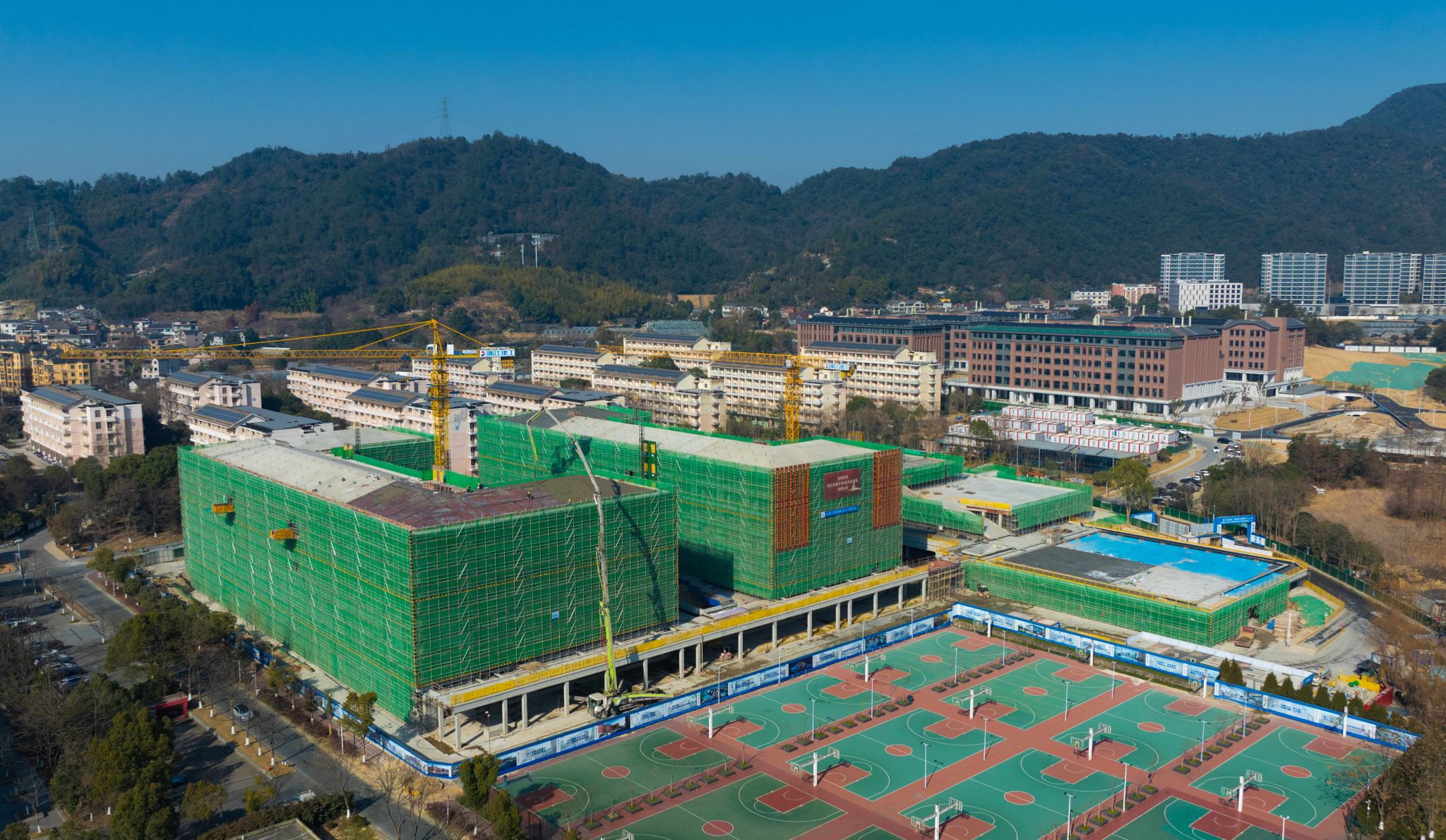 在施工现场,尽管在校生们已放寒假,但本该日渐冷清的开云电竞s13校园里,依然热火朝天。两幢6层高的学生宿舍楼、学习中心、食堂里,近百名建筑工人正加班加点,忙得不亦说乎,塔吊、臂架式混凝土泵车加足马力,完成最后的工作。随着主体结构顺利结顶,项目的建设重点,开始转到内部砌体及二次结构施工、室内外装饰装修。同时,屋面电梯,电气、消防、弱电等工程等也将陆续开展,相关参建单位将进一步齐心协力、严把安全关、质量关,确保进度,按计划投入使用。