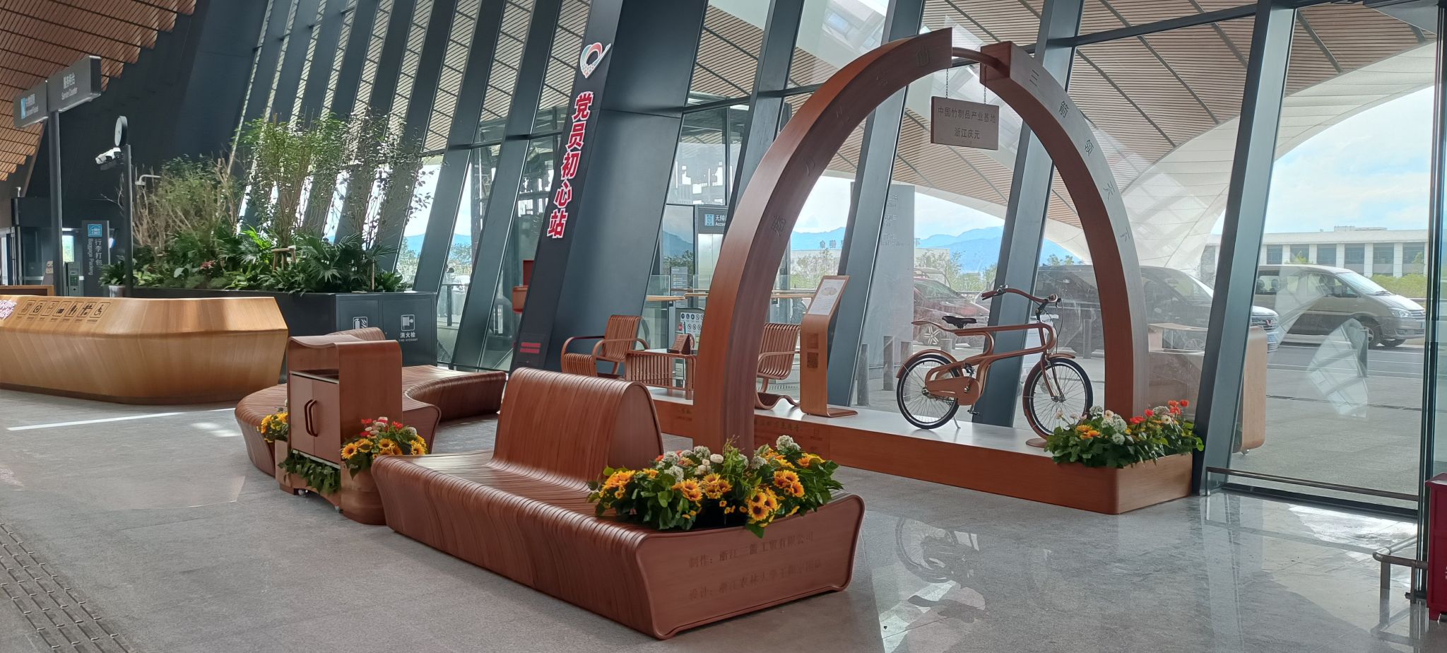 走进浙江的丽水机场候机大厅,会看到一座跨度5米的竹制拱门,流畅的弧线宛如瓯江碧波,又似庆元廊桥飞檐,将竹材的曲艺美学和中国竹文化呈现得淋漓尽致。这是中国竹材弯曲技术首次在国内航空枢纽应用,不仅为“以竹代塑”倡议在大型公共空间的落地提供了示范样本,也创新展示了中国竹文化的独特魅力。
