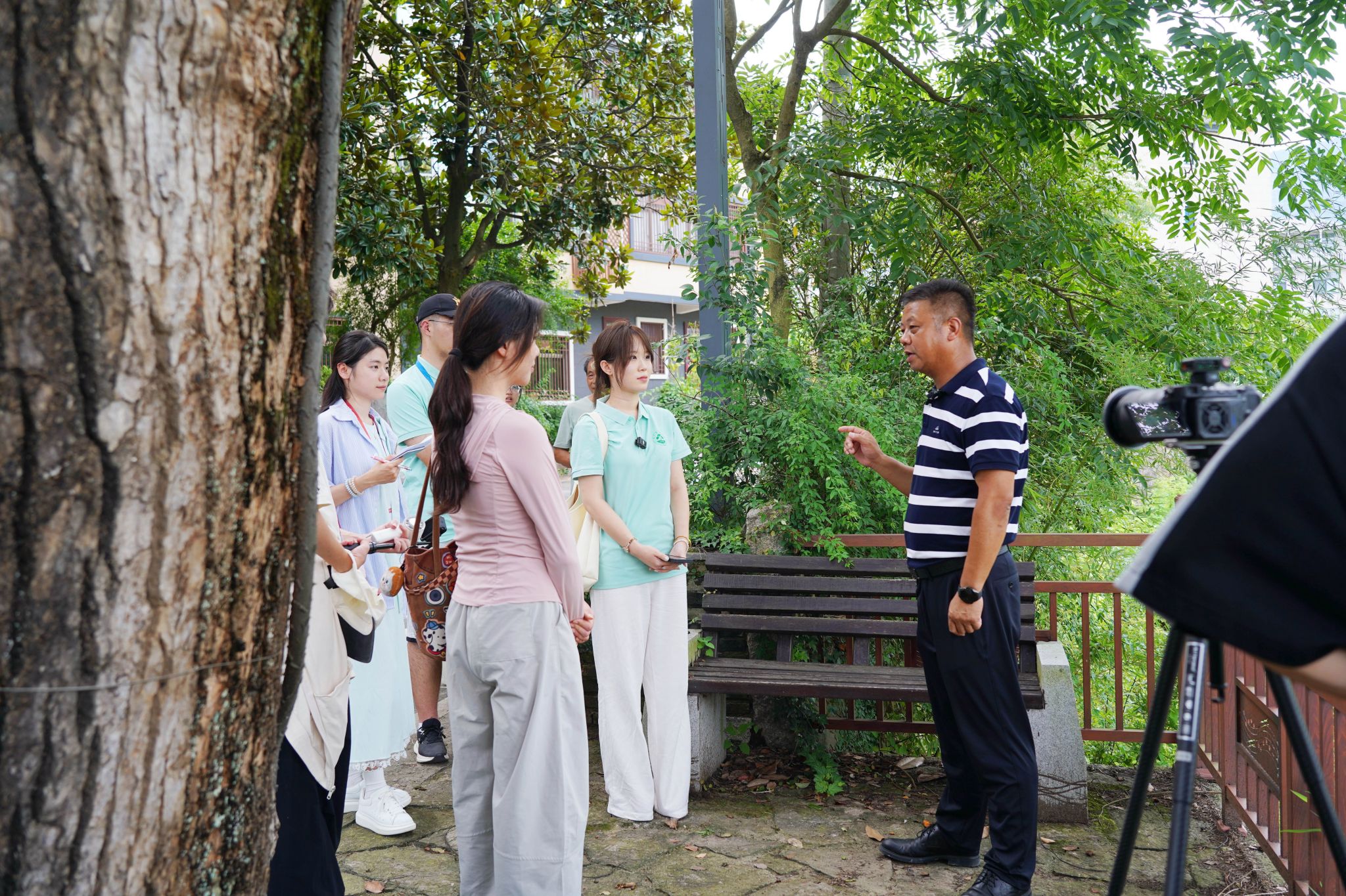 林嘉怡前往寻访的古树,位于浙江省金华市傅村镇畈田蒋村的艾青故居内。这是两棵千年古樟树,其中母樟胸径达4.5米,需9人合抱,主干中空可容10余人站立,与略小的公樟并肩而立,被村民亲切地称为“父母樟”。通过走访72岁的讲解员蒋光军,林嘉怡了解到,我国著名诗人艾青以前常在树下写生,更在诗作中赋予其“土地深情”的象征意义。