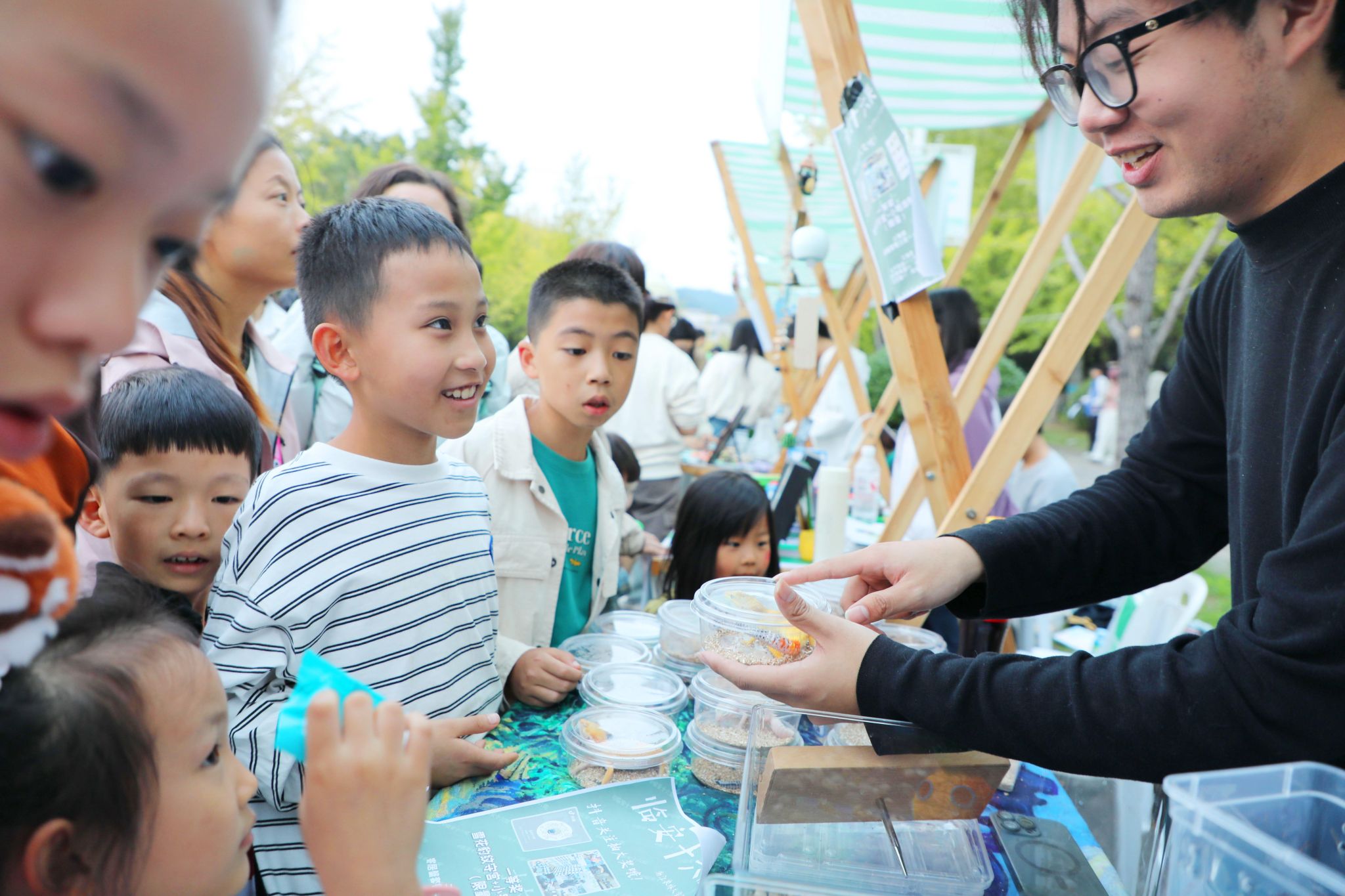 本次活动的核心区域是由200多个生态摊位组成的生态市集。市集涵盖文创、美食、生物、循环利用、非遗、创新等多个板块。参与者不仅可以观赏纯手工生态瓶、精美昆虫标本,参与二手物品循环交易,还能体验宠物义诊、欣赏非遗作品和生态菊花展,观看科学实验秀等。形式多样的活动让生态保护理念可感可触。