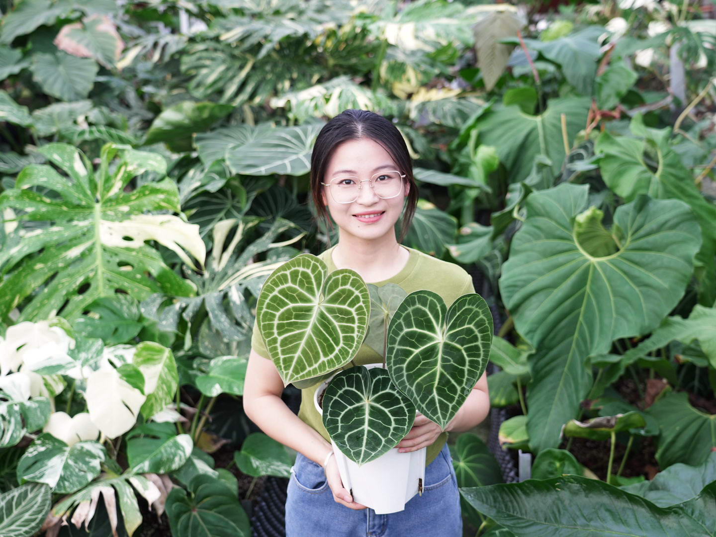 目前,廖万甜的“瓜牛雨林”已从100平方米扩展到10000平方米,拥有400多种热带植物种质资源,完成选育并投入市场的花烛品种20个,正在选育中的品种有56个。曾经的几片叶子,已繁育成长为基地销售额超300万元,总产值超千万元的微型“热带雨林”,成为浙江省最大的花烛育种基地。