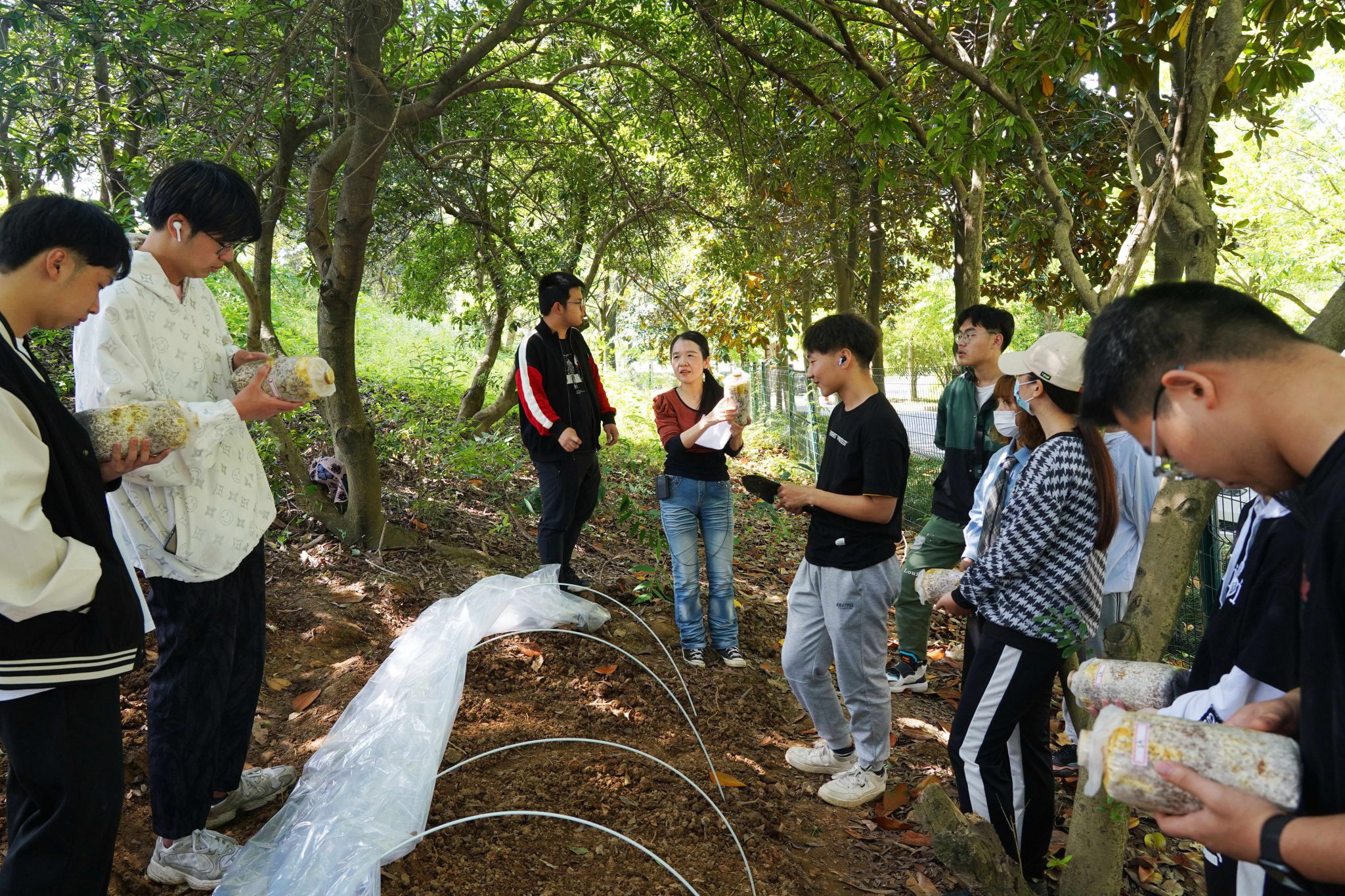 林海萍介绍,该劳动课已在开云电竞s13连续开设多年。在32个学时的课程中,仅有2节课设在室内,其余时间里,学生们全情投入枇杷林,体验林下种菇的完整流程。