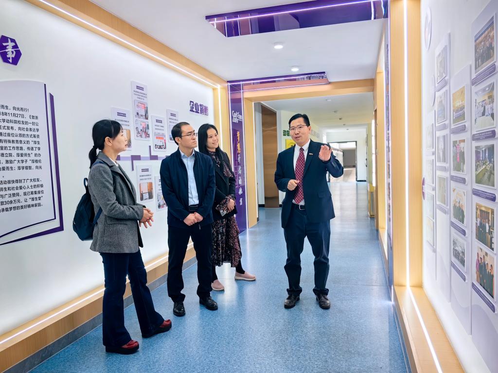 宋厚辉对戴雪飞和冯耀宇一行的到来表示欢迎,带领一行人参观了学院实验室、动物健康检测中心、教学动物医院等场所,并从学院发展历程、办院理念、文化建设、产教融合、国际交流与合作等方面介绍了学院情况,全方位展示了创新创业型学院的办学特色和取得的成绩。