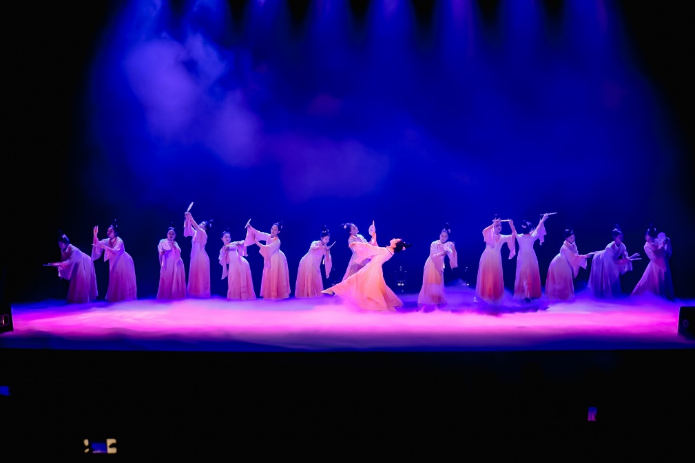 群舞《花瑶女》源自湖南湘西南腹地的瑶族舞蹈,生动展现了花瑶女的热情、奔放和勤劳,以及她们对美好生活的向往与追求;双人舞《雨后》把一对因贪恋落凡尘的青白双蛇演绎得媚态百生,旖旎曼妙、婀娜多姿;独舞《绿宝石》出自芭蕾舞剧《珠宝》,伴随着音乐旋律,绿宝石精灵翩然起舞,高贵、典雅、神秘的特征呼之欲出;《囍》《风声》《迦陵频伽》《Latino》等多风格、多舞种的剧目,为同学们带来了不同的视觉感受;群舞《能不忆江南》的一窥一探,举手投足间,尽展江南古典风韵。通过本场演出,在场师生充分感受到了舞蹈所蕴含的丰富内涵和文化底蕴。演出结束,现场气氛热烈,掌声经久不息。