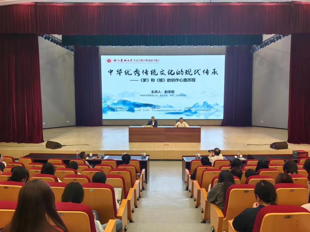 彭学明以“中华优秀传统文化的现代传承——《爹》和《娘》的创作心路历程”为题,分享创作心路历程。他指出《娘》立体呈现了平凡而伟大母亲形象,生动阐释了什么是“娘”、什么是“孝”、什么是文学形象魅力;《爹》重释了父亲在传统文化和家国情怀中的重要意义,是宏阔的湘西父辈史诗,更是中华民族的宏阔画卷、生生不息的人民史诗。讲座故事精彩、人生体会深刻,引起广大师生强烈共鸣。