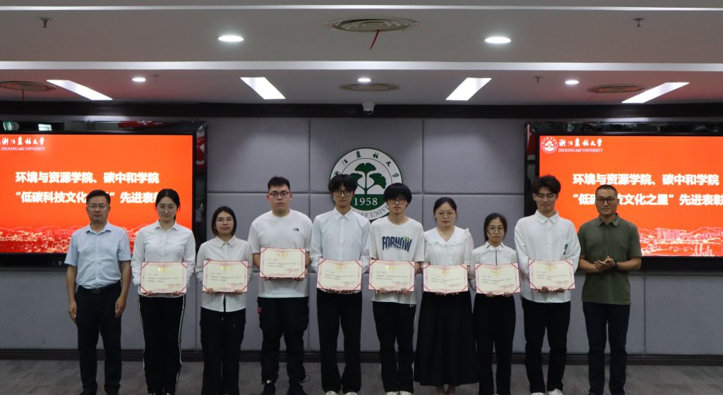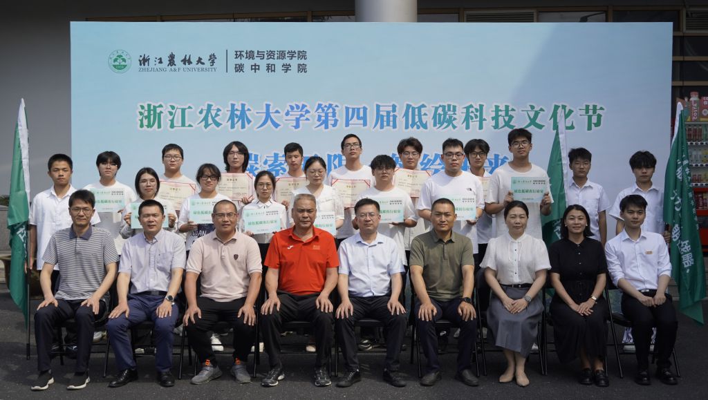 仪式为2023年学院“低碳科技文化之星”先进个人代表颁发了证书,表彰在“挑战杯”、社会实践、低碳志愿、文明示范等科创竞赛和文化活动中涌现出的一批国家级、省级先进个人和集体。仪式为校园“绿色低碳出行寝室”进行了授牌。本批创建寝室将坚持树立绿色低碳理念,践行绿色低碳行为。创建寝室承诺在校园1公里内步行,3公里以内骑自行车,自觉加入“单车一族”,养成低碳环保、节能减排、体育锻炼的生活好习惯。仪式还为2024年学院暑期社会实践团代表进行了授旗。学院暑期社会实践团的师生们,将围绕助力“双碳”战略、“千万工程”、生态文明建设、绿色低碳发展等实践主题,开展特色鲜明、形式多样的社会实践活动。开幕式上,学生代表宣读了低碳文明倡议书。