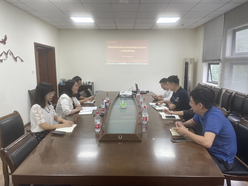 6月24日,桐庐县农业农村局党委副书记徐元骏一行来校交流。校团委书记魏玲玲、桐庐团县委副书记方芳、临安农创园戴贤文出席会议。