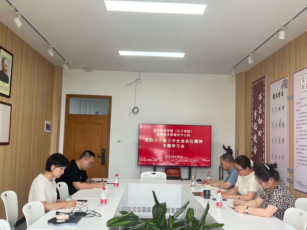 8月7日,国教学院直属党支部召开理论中心组专题学习会,传达学习党的二十届三中全会精神。会议由支部书记赵有华主持,理论中心组全体成员参加。