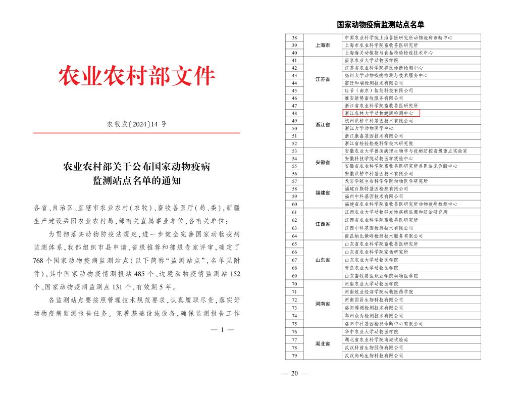 近日,农业农村部公布了国家动物疫病监测站点名单,开云电竞s13动物健康检测中心成功入选。