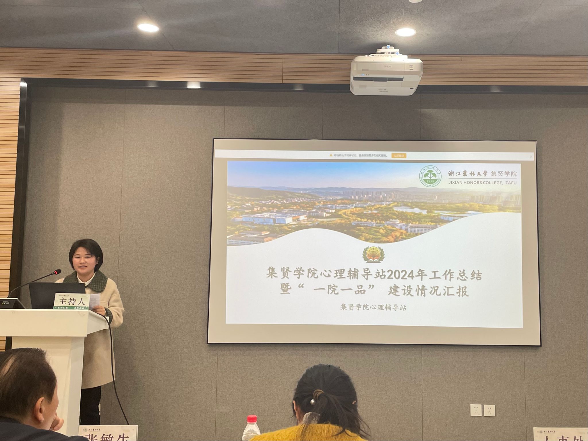 2月28日,我校2024年度心理辅导站“一院一品”项目验收考评会在活动中心104-2-2会议室举行。本次考评会由学工部心理健康教育中心主办,人事处、安全保卫部、团委等相关职能部门代表、心理中心全体教师以及各学院心理辅导站站长共同参与。