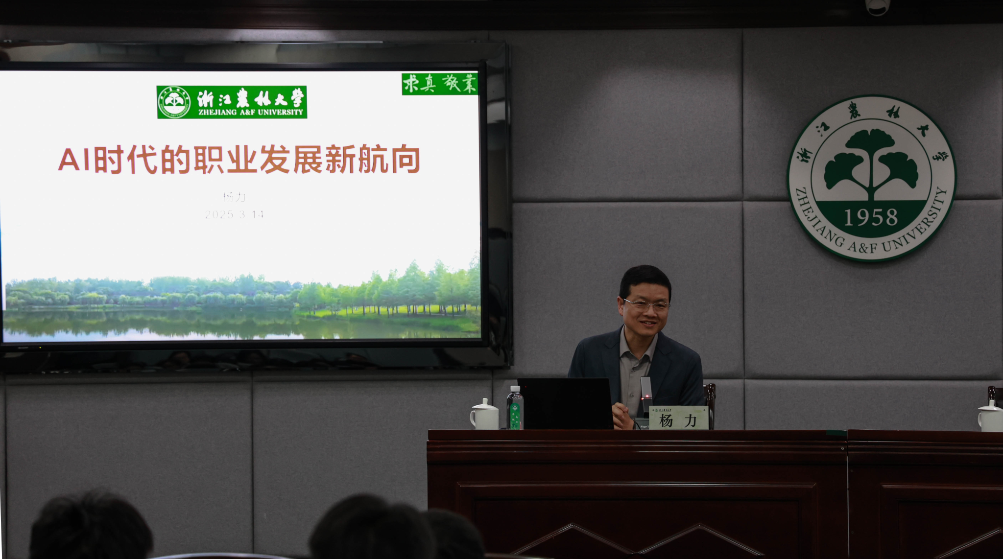 本次活动邀请中国人工智能学会教育工作委员会委员、中国工业合作协会仿真技术产业分会专家委员会委员、中国宇航学会会员、浙江省人工智能学会高级会员杨力,作题为《AI时代的职业发展新航向》的主题报告,杨力老师从AI与就业形势关系、AI发展现状、AI使用指南以及案例分享等几个维度,剖析了在人工智能技术浪潮下,学生应当如何从当下做起,提高自身核心竞争力,把握职业机遇。