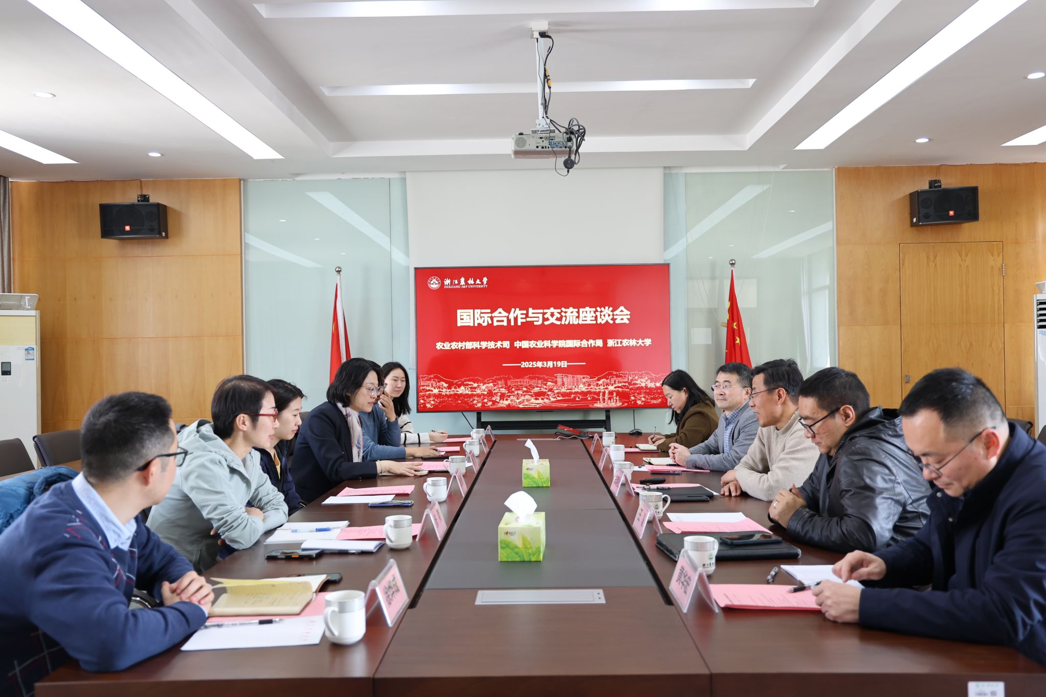 3月19日,农业农村部科学技术司一级主任科员姚俊杨、中国农业科学院国际合作局副局长(主持工作)钱钰带队到林生院调研交流,非洲科学院院士周旭东教授、国际合作与交流处处长王磊和科技处、竹研院相关负责人参加座谈会,会议由林生院党委书记郑炳松主持。