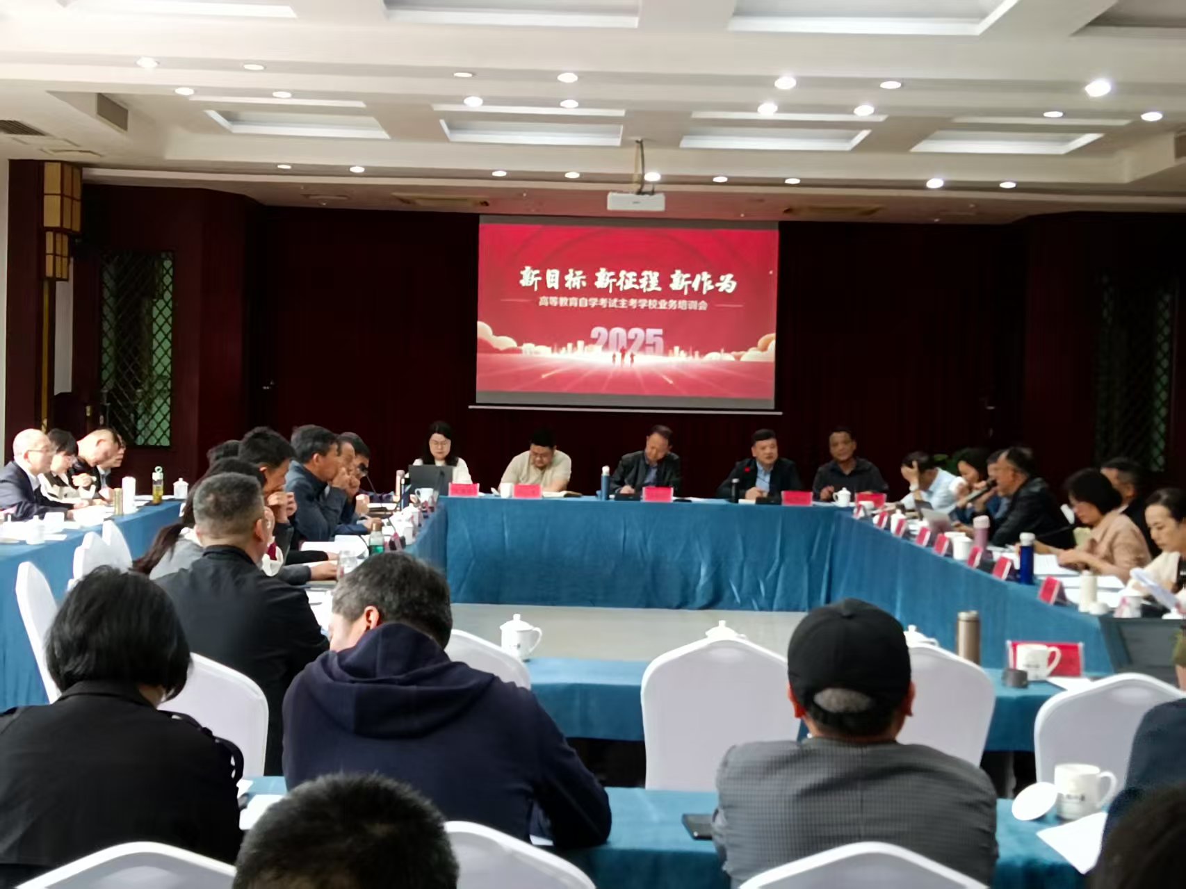 本次会议以“新目标、新征程、新作为”为主题,全省23所主考院校、省管全日制自考助学院校代表70余人共同参会。