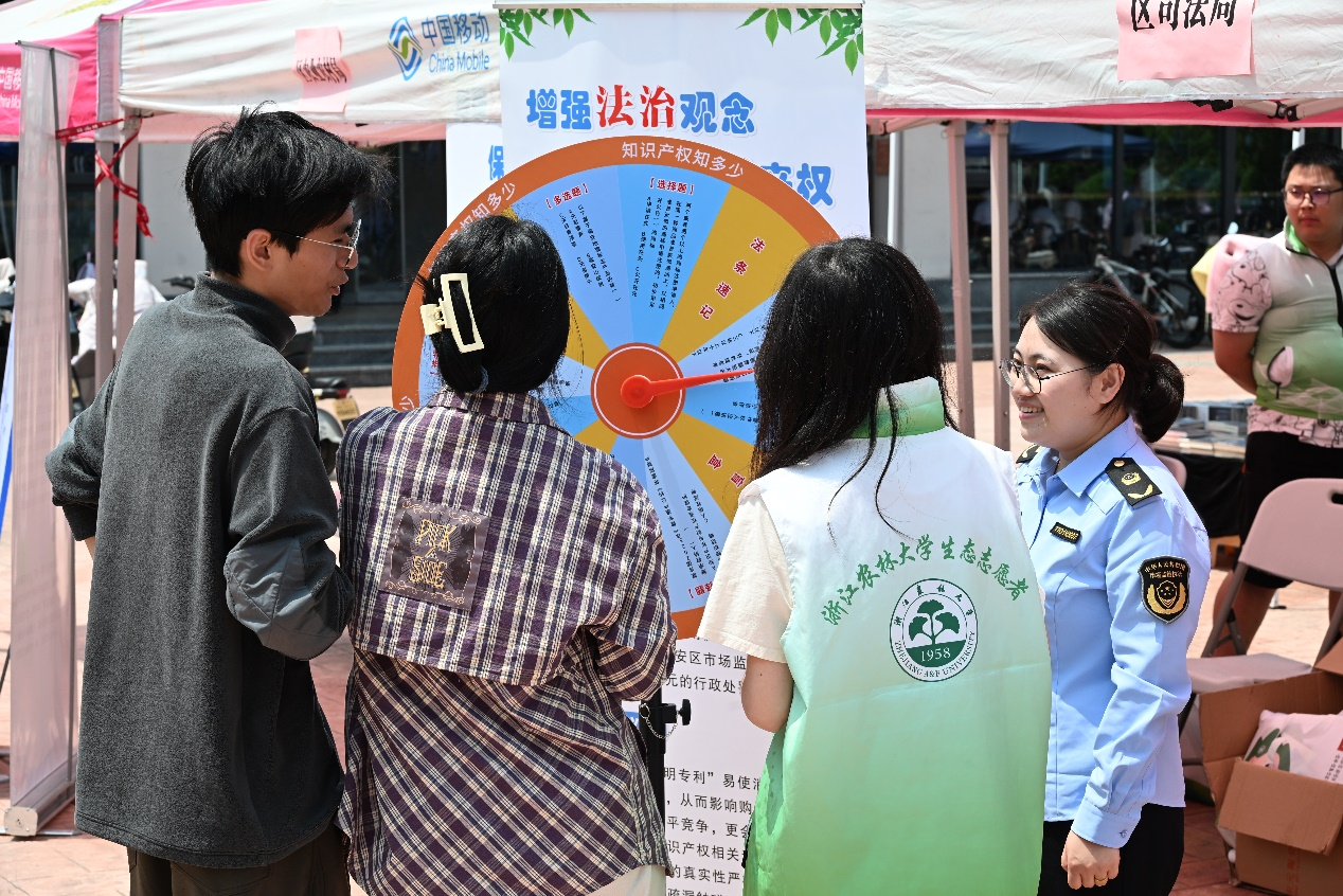 4月23日,校科技处、文科处和团委联合临安区市场监管局、法院、农业农村局、文旅局、检察院、九三学社临安区第三支社等单位,在学校东湖校区举行了一年一度的知识产权宣传校园行活动。
