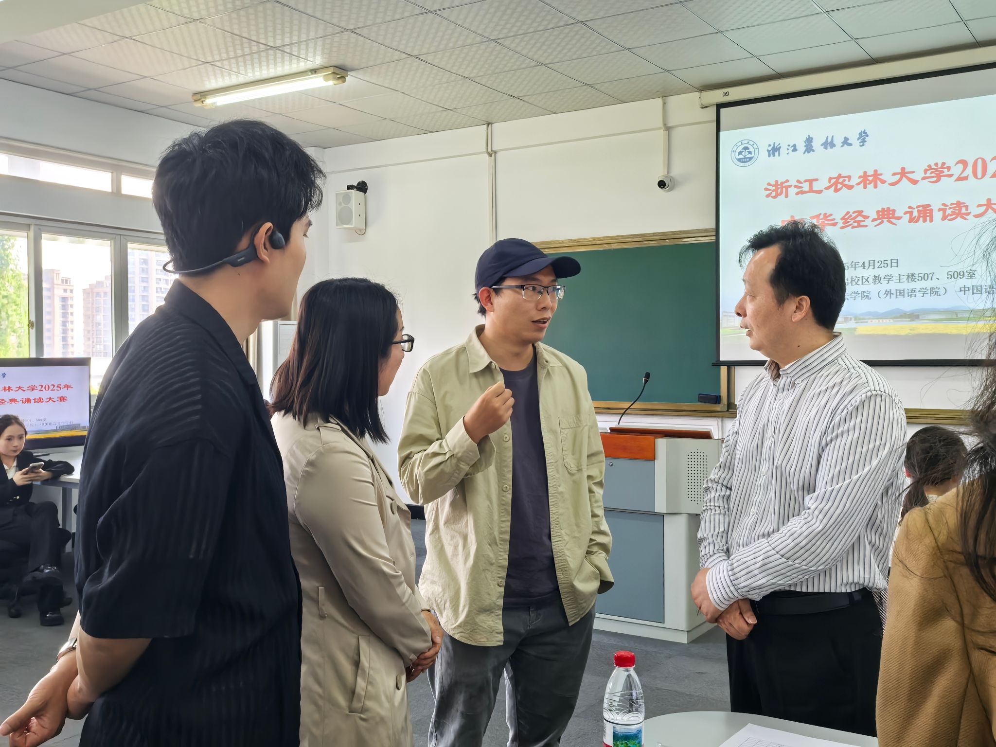 本次大赛特邀绍兴文理学院屠国平教授、浙江传媒学院李贞教授等校外专家,文法学院陈艳君老师、艺术学院李宣老师、中国语协演讲与口才分会严景城老师,以及中文学科彭庭松、朱永香、黄文浩等多位教师组成专业评审团。比赛期间,校党委副书记倪建均到现场指导工作,了解赛事流程和评价标准,询问选手表现,并与评委专家展开交流,为大赛的顺利开展提供了有力支持。
