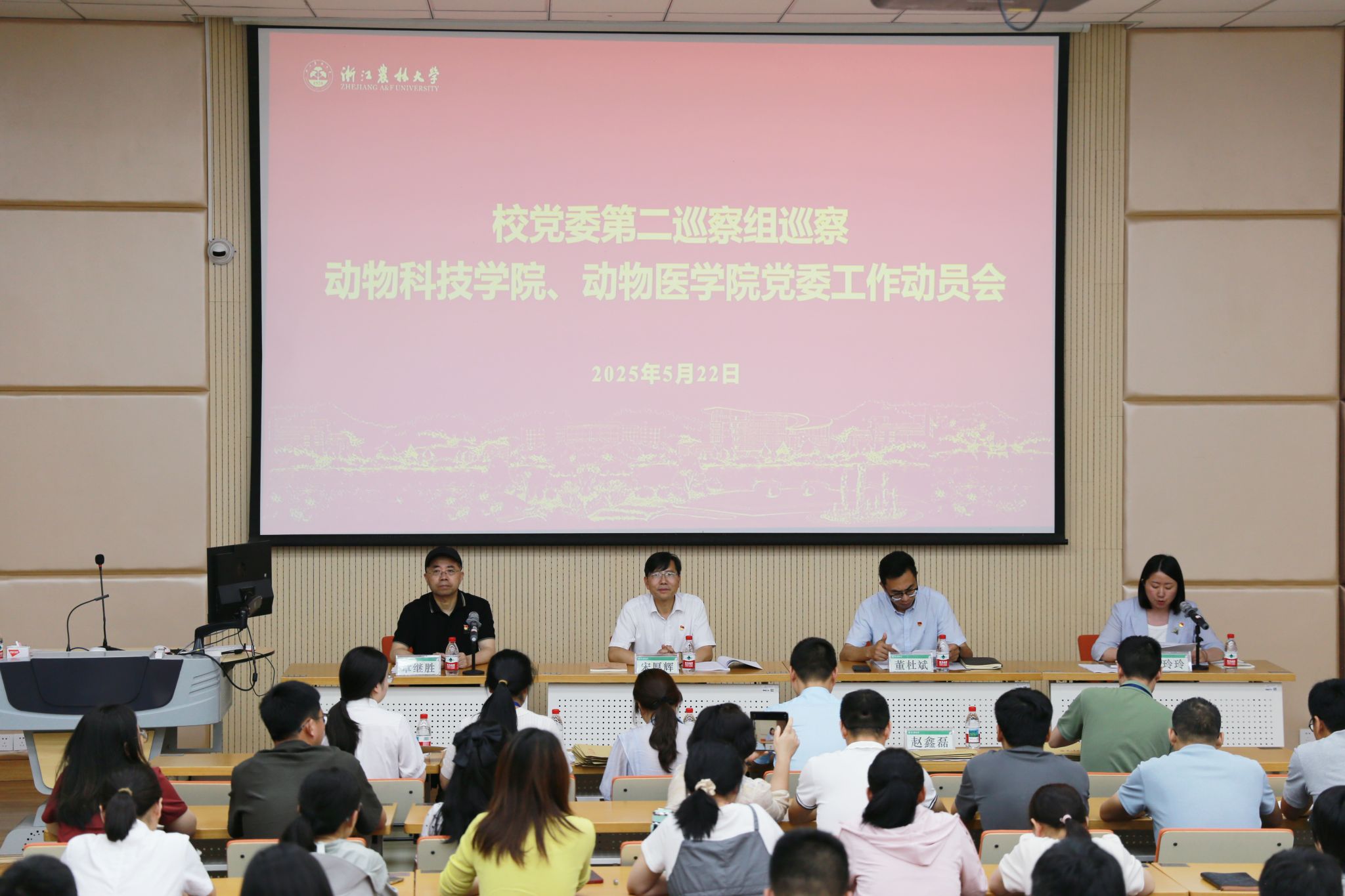 5月22日,校党委第二巡察组巡察动物科技学院、动物医学院党委工作动员会在学二厚生堂召开。巡察组组长、党委组织部部长、统战部部长董杜斌作动员讲话,纪检监察室、巡察办主任章继胜对做好巡察工作提出具体要求。校党委第二巡察组全体成员,动科动医学院党政领导班子成员、全院教职工参加会议。