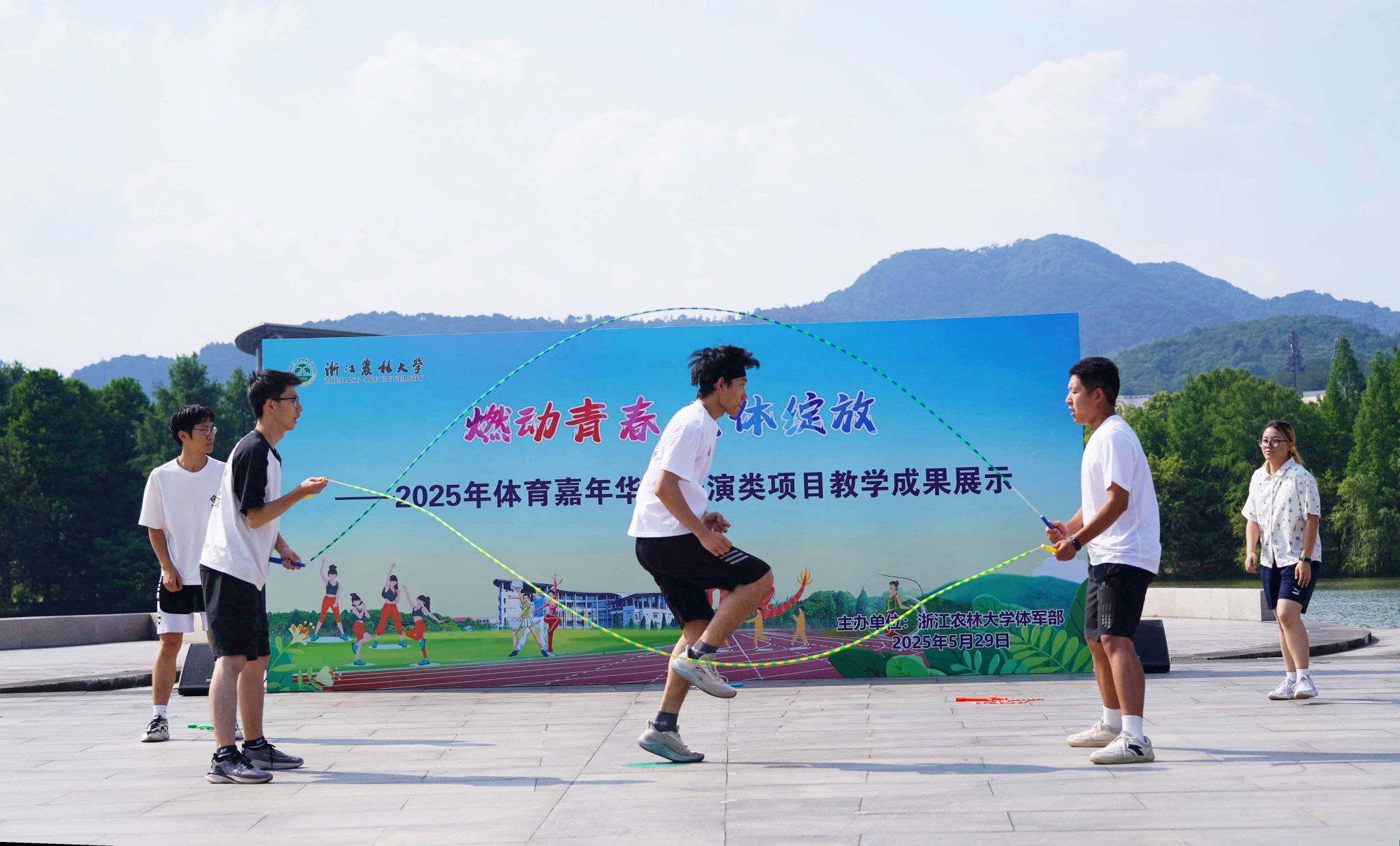 5月29日,“燃动青春 艺体农林——2025年体育嘉年华之表演类项目教学成果展示”在五舟广场举行。活动以一曲空灵婉转的《天空》拉开序幕。