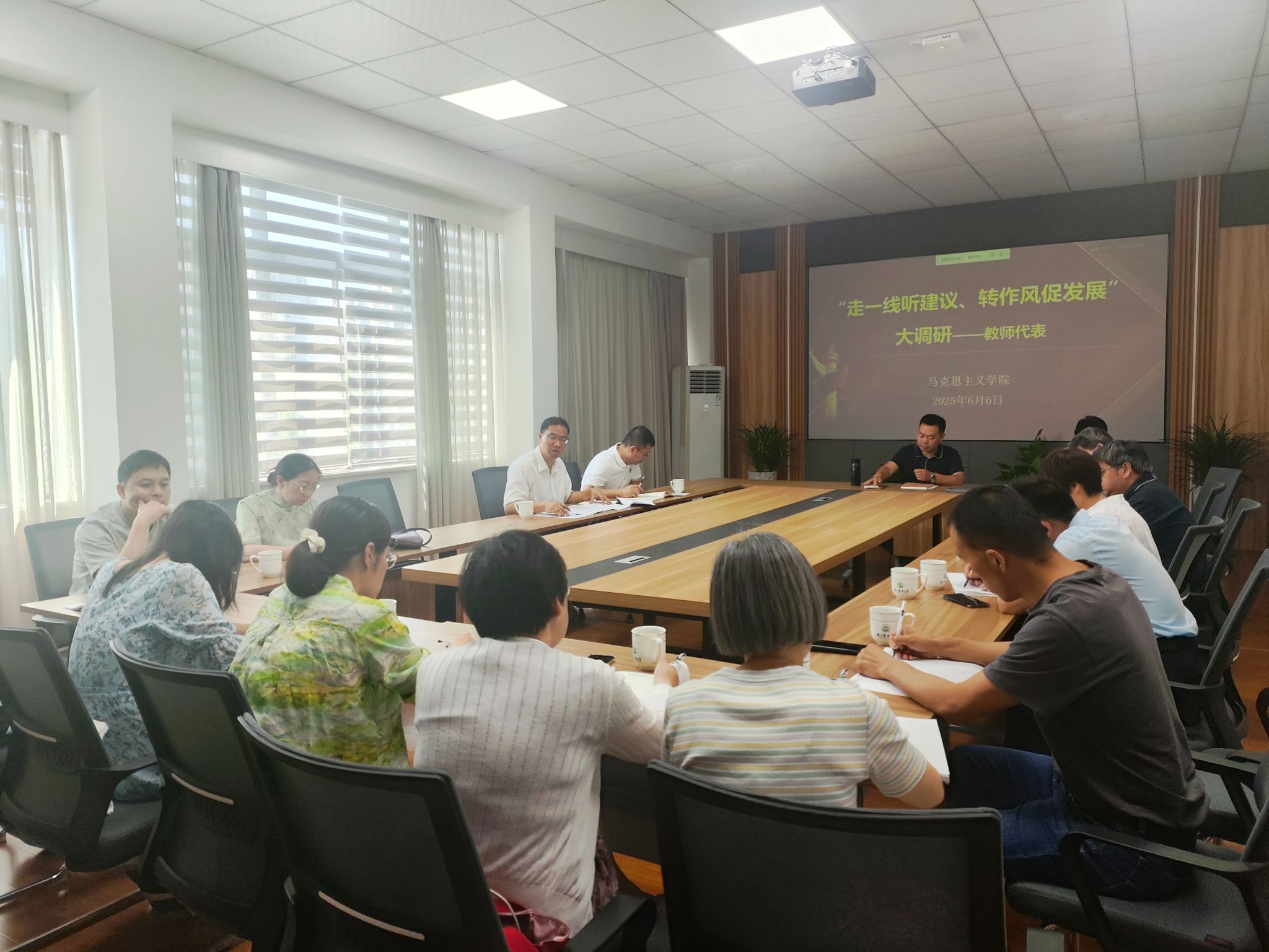调研活动中,师生聚焦“教学改革创新、科研能力提升、学科内涵发展、青年教师发展、育人环境优化”等关键领域,展开热烈讨论。大家一致认为,一要创新教学方法,开发具有农林特色的思政课程资源库和案例集,增强思政课的针对性和吸引力。二要提升科研服务水平,强化科研团队组织化建设,加强与地方政府的协同合作,力争在阐释党的“三农”理论创新成果、总结乡村振兴实践经验、服务乡村治理现代化等方面产出高质量、有影响力的研究成果。三要推动学科内涵式发展,凝练研究方向,突出农林院校马院的特色与优势,在乡村治理、共同富裕、乡村文化建设等领域形成研究特色和学术品牌。四要加强高层次人才引培和团队建设,积极发挥老教师“传帮带”作用,着重加强青年教师培养,不断提升学科核心竞争力和社会影响力。五要优化育人环境,涵养优良院风学风,在硬件环境上,建议优化办公空间,改善学习研究条件,营造潜心育人、严谨治学的良好氛围。