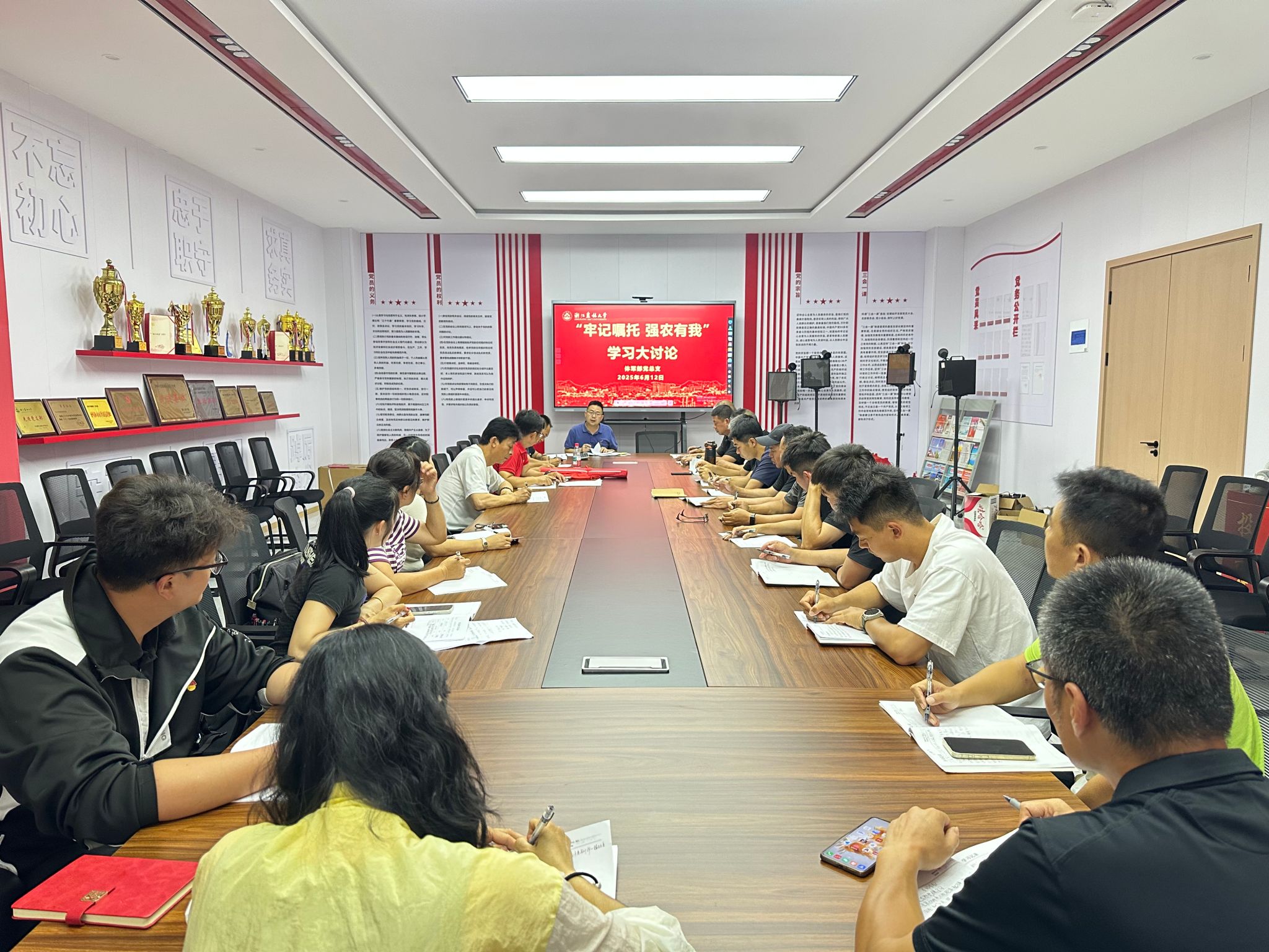 6月12日,体军部在风雨操场一楼会议室召开全体党员理论学习会,围绕“落实立德树人根本任务,构建‘大思政’育人格局”“深化教育教学改革,培养更多知农爱农新型人才”两大主题,组织开展“牢记嘱托 强农有我”学习大讨论活动。讨论会由体军部党总支书记周晓光主持。