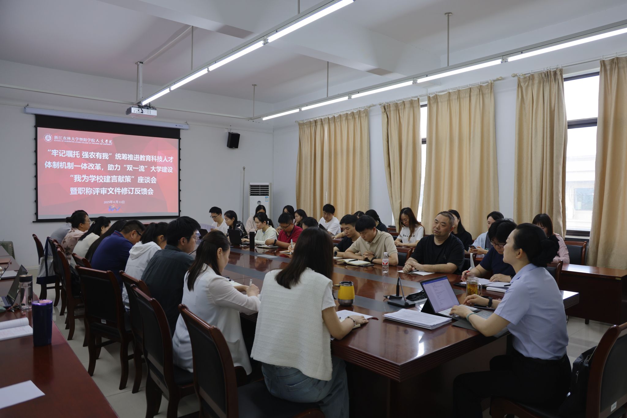 暨阳学院党委书记洪昀高度肯定学院教师的积极贡献,要求相关部门认真梳理研究教师们提出的意见建议,制定具体工作计划,明确责任人和时间节点,确保事事有回音,件件有着落。青年教师要全面贯彻党的教育方针,落实立德树人根本任务,提升综合素养、关心关爱学生,立足本职岗位,勇于担当,积极作为。